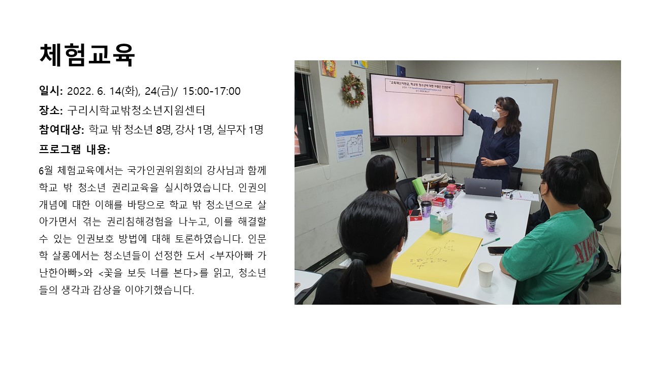 2022년 6월 체험교육 (학교밖) 작성자 관리자 등록일자 2022년 7월 8일 14시 15분 34초 조회 372 2022년 6월 체험교육 (학교밖).JPG [ Size : 154.16KB , Down : 194 ] 미리보기 다운로드 목록보기