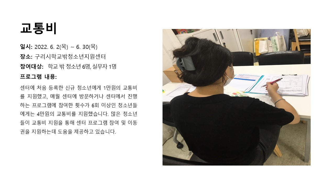 2022년 6월 교통비 (학교밖) 작성자 관리자 등록일자 2022년 7월 8일 14시 20분 52초 조회 443 2022년 6월 교통비 (학교밖).JPG [ Size : 128.92KB , Down : 258 ] 미리보기 다운로드 목록보기