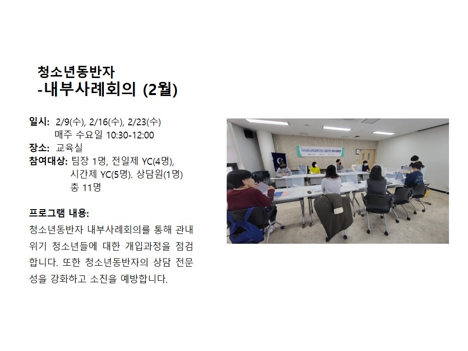 2022년 2월 내부사례회의 작성자 관리자 등록일자 2022년 3월 7일 10시 26분 30초 조회 582 내부사례회의(2월).JPG [ Size : 94.39KB , Down : 278 ] 미리보기 다운로드 목록보기