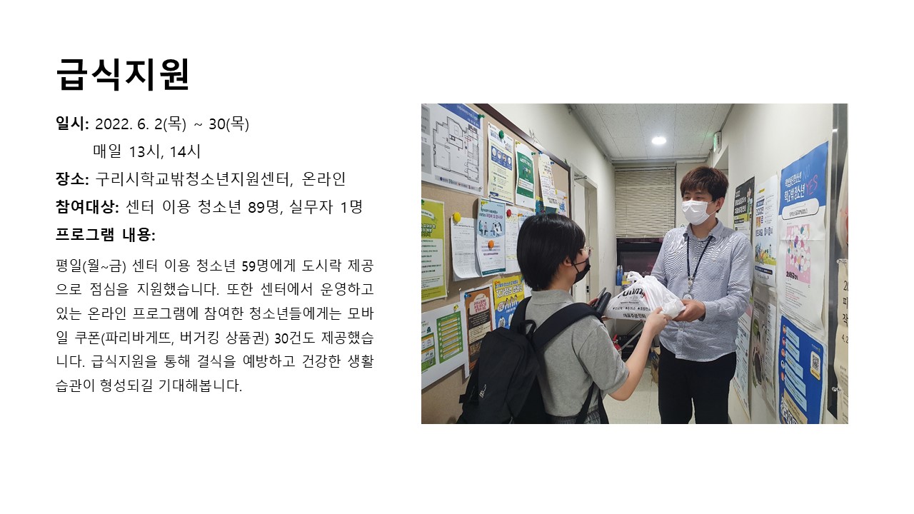 2022년 6월 급식지원 (학교밖) 작성자 관리자 등록일자 2022년 7월 8일 14시 20분 23초 조회 493 2022년 6월 급식지원 (학교밖).JPG [ Size : 161.34KB , Down : 237 ] 미리보기 다운로드 목록보기