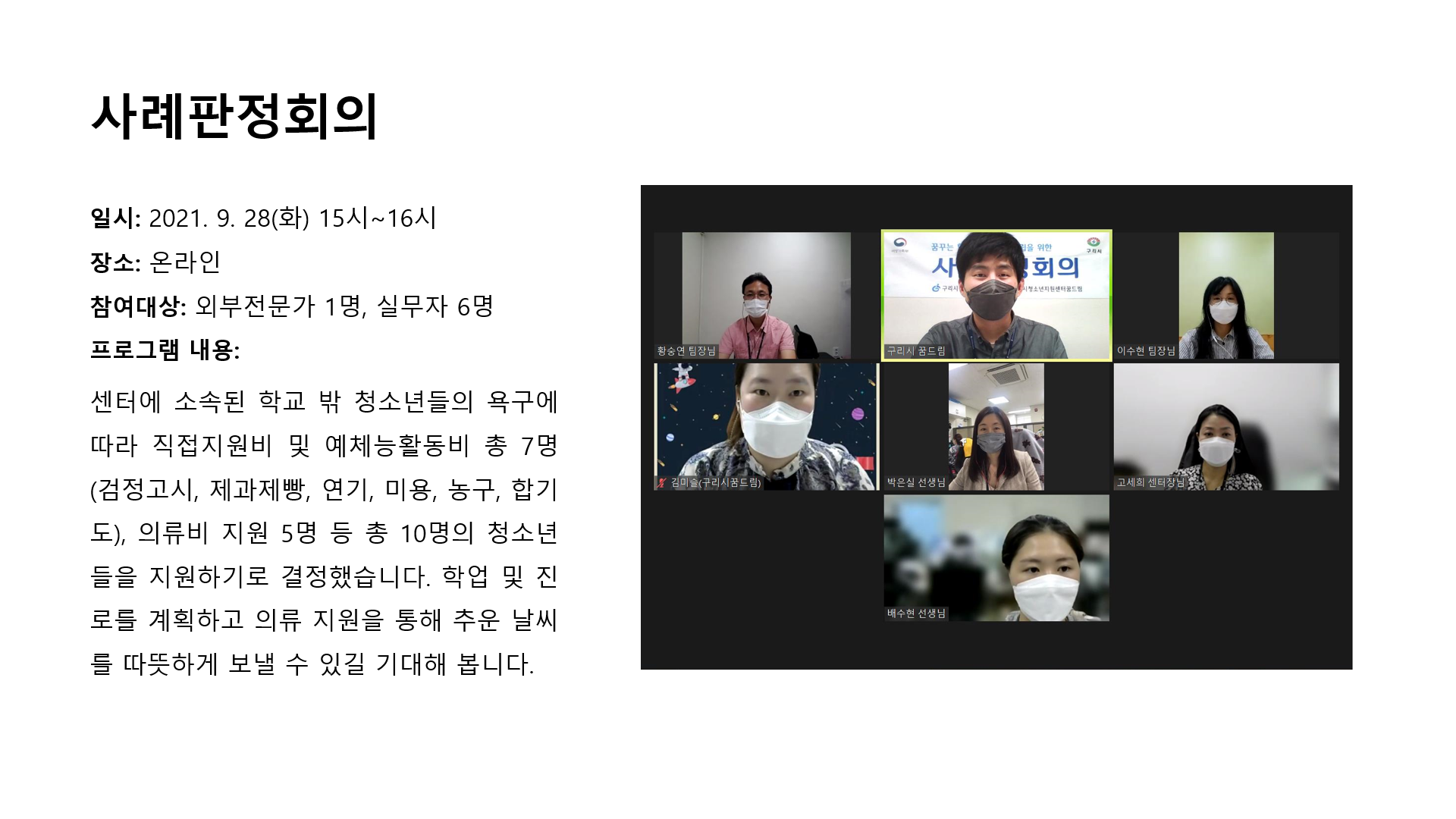 사례판정회의(학교밖) 작성자 관리자 등록일자 2021년 10월 1일 19시 12분 25초 조회 490 학교밖-사례판정회의(9월).png [ Size : 497.42KB , Down : 205 ] 미리보기 다운로드 목록보기