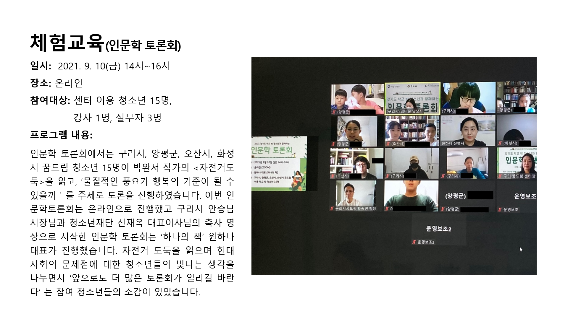 체험교육 인문학 토론회(학교밖) 작성자 관리자 등록일자 2021년 10월 1일 19시 14분 29초 조회 571 학교밖-체험교육(인문학 토론회,9월).png [ Size : 1.04MB , Down : 229 ] 미리보기 다운로드 목록보기