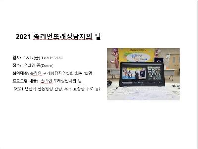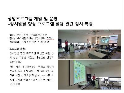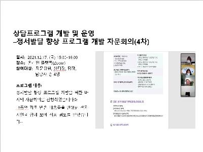 게시판 검색 표시줄수 : 3개씩 보기6개씩 보기9개씩 보기12개씩 보기15개씩 보기18개씩 보기21개씩 보기24개씩 보기27개씩 보기30개씩 보기 검색 대상 : 전체 검색제목내용 검색어 : 검색 총 219건(13/25페이지) 2021년 12월 상담복지센터 운영보고 2022-01-17 2021년 12월 상담프로그램 개발 및 운영-자문회의 2022-01-17 2021년 12월 상담프로그램 개발 및 운영-정서발달 향상 특강 2022-01-17 2021년 12월 솔리언 또래상담자의 날 2022-01-17 2021년 12월 청소년동반자 내부사례회의 2022-01-17 2021년 12월 청소년 안전망 5차 솔루션회의 2022-01-17 2021년 12월 찾아가는 상담(하루지킴e) 2022-01-17 2021년 12월 정서조절 집단상담 프로그램 2022-01-17 2021년 12월 노동인권 보호지원사업 교육(고등부 심화) 2022-01-17 ◀ 이전 11 12 13 14 15 16 17 18 19 20 다음 ▶
