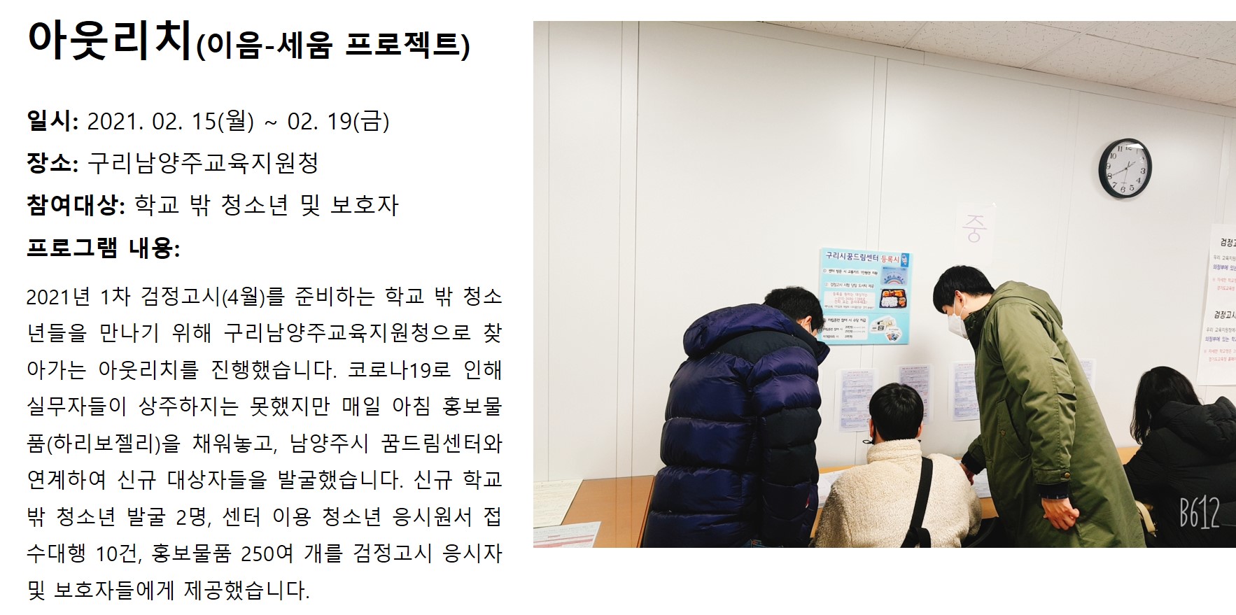 2월 아웃리치 작성자 관리자 등록일자 2021년 3월 10일 14시 37분 48초 조회 509 - 2월 아웃리치.jpg [ Size : 282.88KB , Down : 227 ] 미리보기 다운로드 목록보기