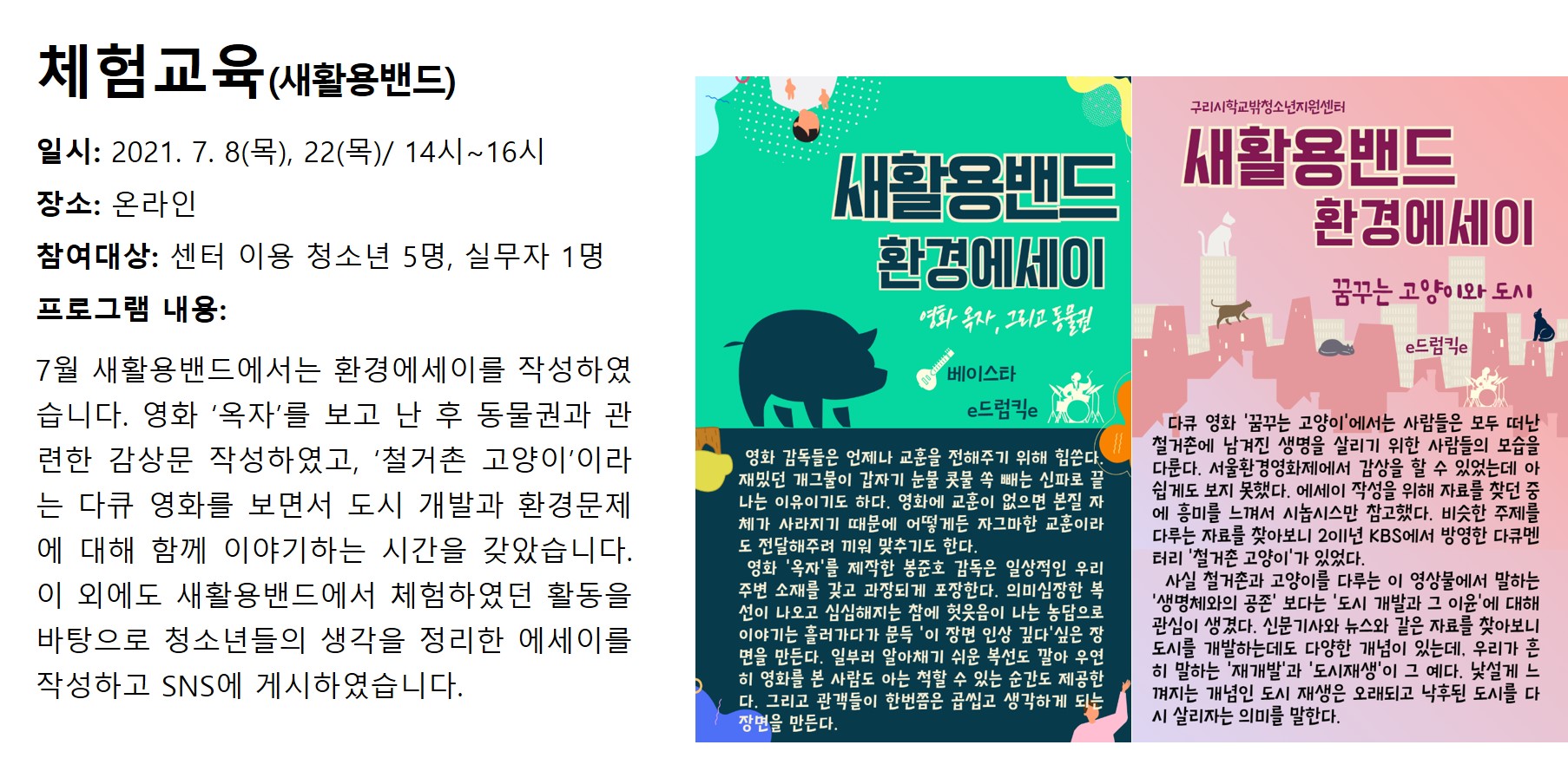 7월 체험교육 작성자 관리자 등록일자 2021년 8월 4일 17시 20분 36초 조회 554 7월 체험교육.jpg [ Size : 413.07KB , Down : 293 ] 미리보기 다운로드 목록보기