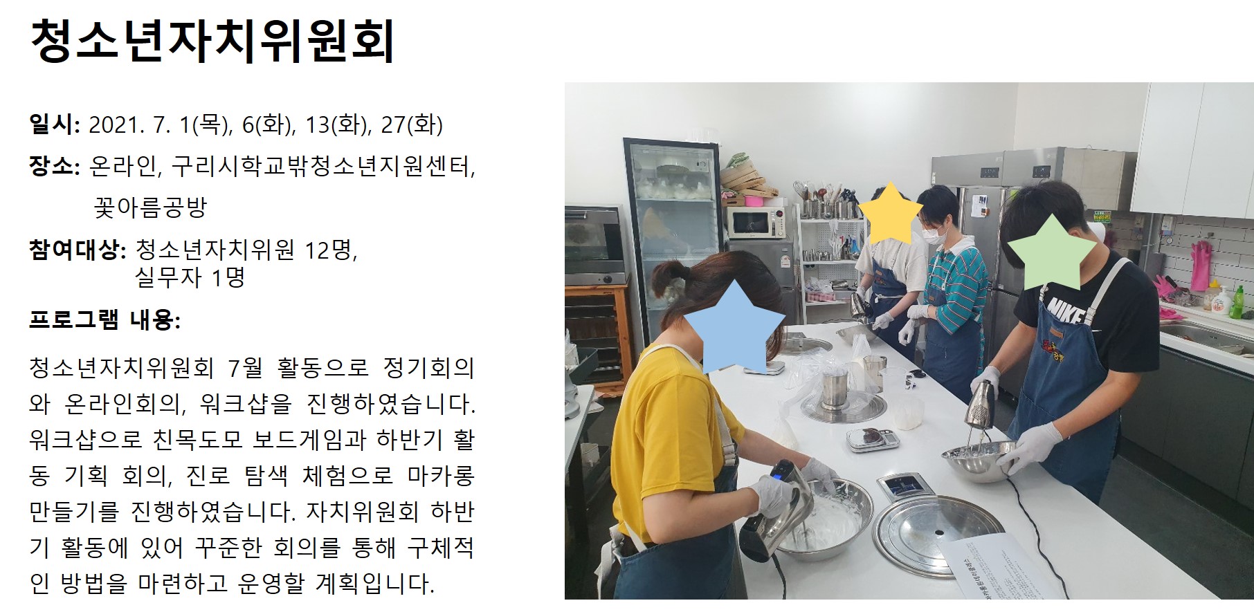 7월 청소년자치위원회 작성자 관리자 등록일자 2021년 8월 4일 17시 19분 22초 조회 640 7월 청소년자치위원회.jpg [ Size : 317.23KB , Down : 292 ] 미리보기 다운로드 목록보기