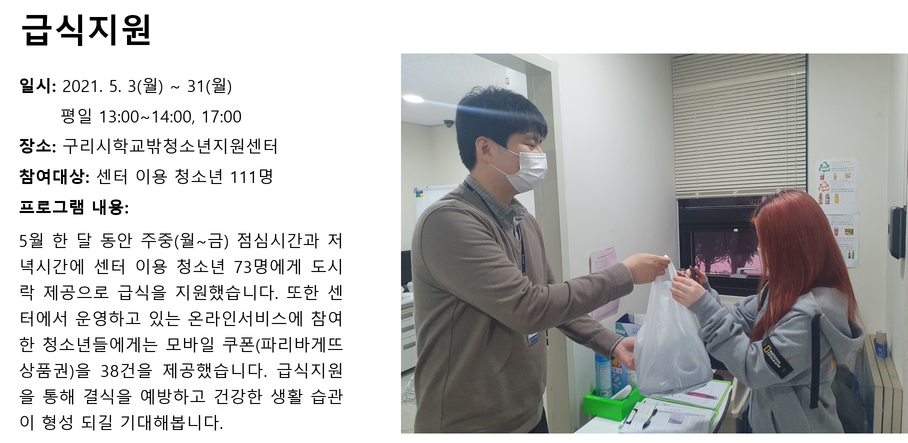 5월 급식지원 작성자 관리자 등록일자 2021년 5월 25일 17시 1분 34초 조회 493 body{font-family: Tahoma,Verdana,Arial;font-size: 11px;color: #555555;margin: 0px}td{font-size :11px; font-family: Tahoma,Verdana,Arial;}p{margin-top:1px;margin-bottom:1px;} 5월 급식지원.jpg [ Size : 353.87KB , Down : 222 ] 미리보기 다운로드 목록보기