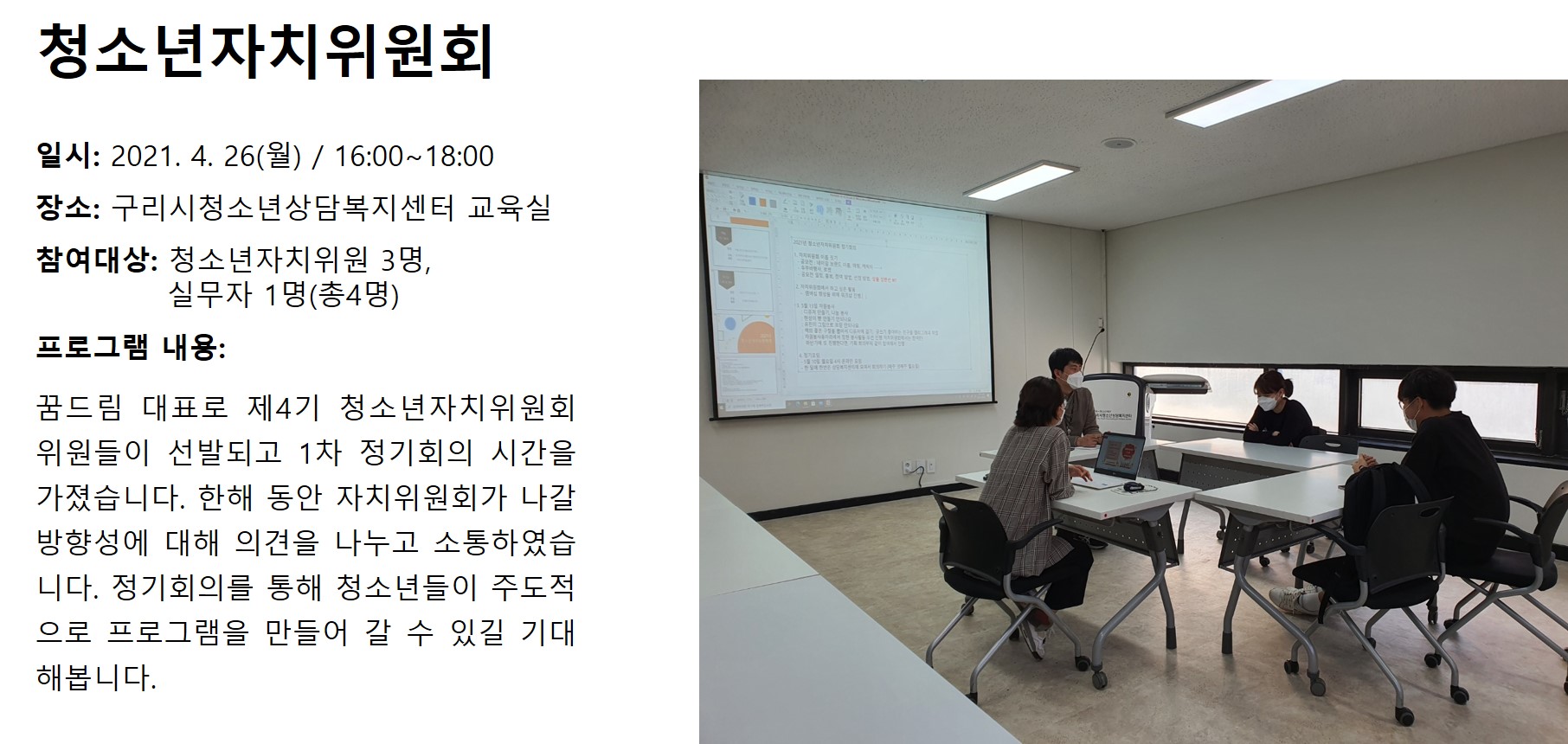 4월 청소년자치위원회 작성자 관리자 등록일자 2021년 5월 17일 12시 48분 11초 조회 509 body{font-family: Tahoma,Verdana,Arial;font-size: 11px;color: #555555;margin: 0px}td{font-size :11px; font-family: Tahoma,Verdana,Arial;}p{margin-top:1px;margin-bottom:1px;} 4월 청소년자치위원회.jpg [ Size : 269.26KB , Down : 235 ] 미리보기 다운로드 목록보기