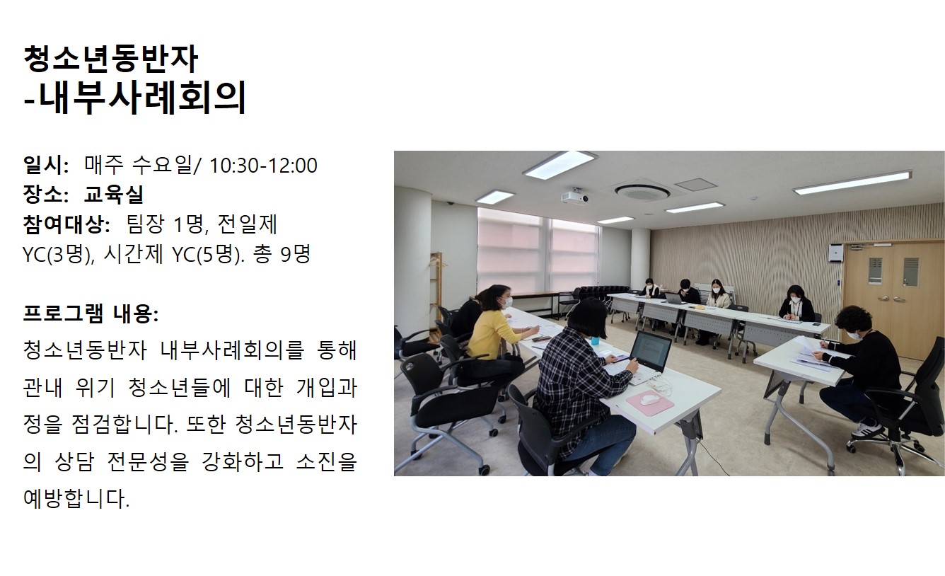 5월 청소년동반자 내부사례회의 작성자 관리자 등록일자 2021년 5월 25일 19시 6분 18초 조회 745 . 5월 청소년동반자 내부사례회의.jpg [ Size : 183.3KB , Down : 311 ] 미리보기 다운로드 목록보기