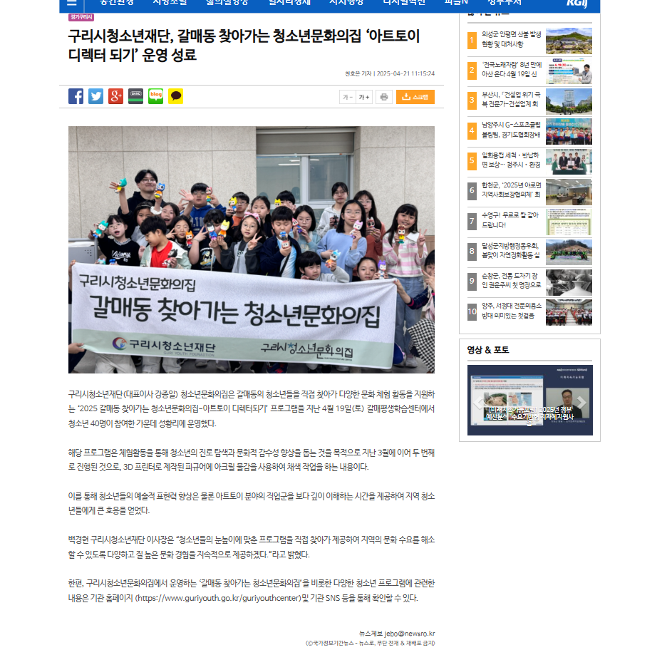 구리시청소년재단 갈매동 찾아가는 청소년문화의집 '아트토이 디렉터 되기' 운영 성료 (비전21뉴스 외 3곳) 작성자 이호암 등록일자 2025년 4월 22일 17시 59분 13초 조회 190 보도자료.png [ Size : 576.74KB , Down : 136 ] 미리보기 다운로드 목록보기