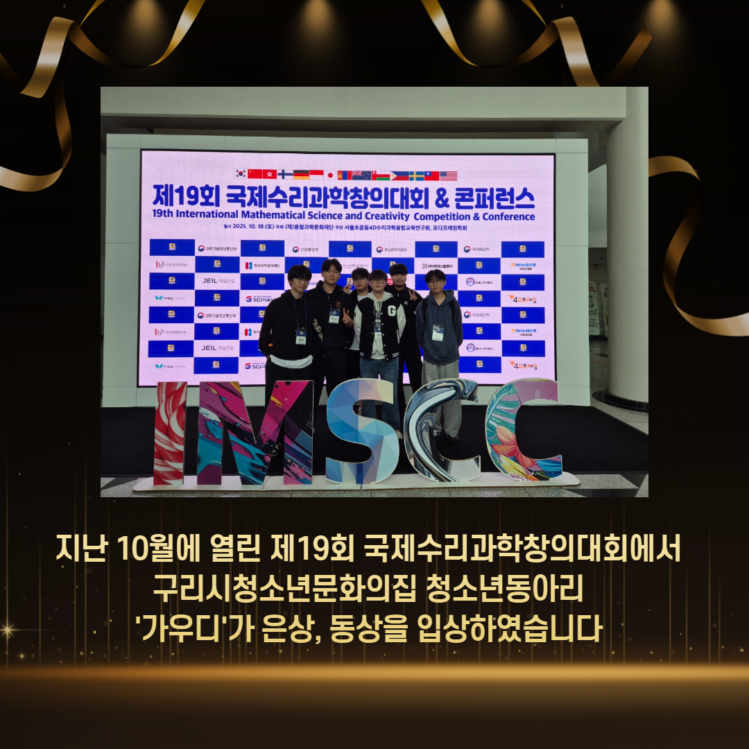 청소년동아리 가우디 국제수리과학창의대회 입상 (은상, 동상) 작성자 이호암 등록일자 2025년 11월 18일 17시 10분 59초 조회 15 제목을 입력하세요 1.jpg [ Size : 577.1KB , Down : 21 ] 미리보기 다운로드 제목을 입력하세요 2.jpg [ Size : 927.44KB , Down : 21 ] 미리보기 다운로드 제목을 입력하세요 3.jpg [ Size : 806.77KB , Down : 21 ] 미리보기 다운로드 제목을 입력하세요 4.jpg [ Size : 808.29KB , Down : 18 ] 미리보기 다운로드 제목을 입력하세요 5.jpg [ Size : 822.66KB , Down : 21 ] 미리보기 다운로드 목록보기