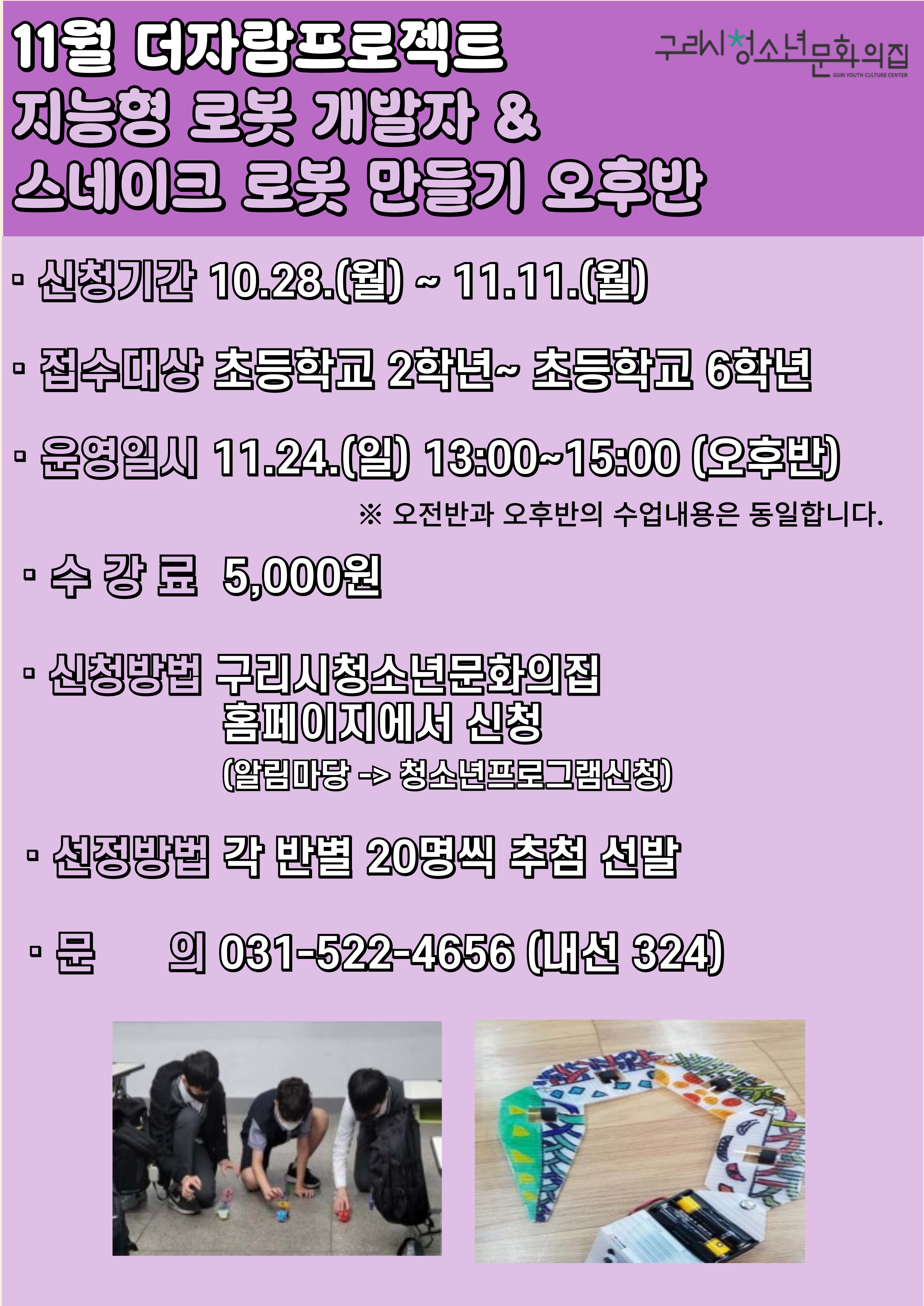 | 프로그램명 | 더자람프로젝트 지능형로봇개발자 직업탐구 오후반 (11.24.) |