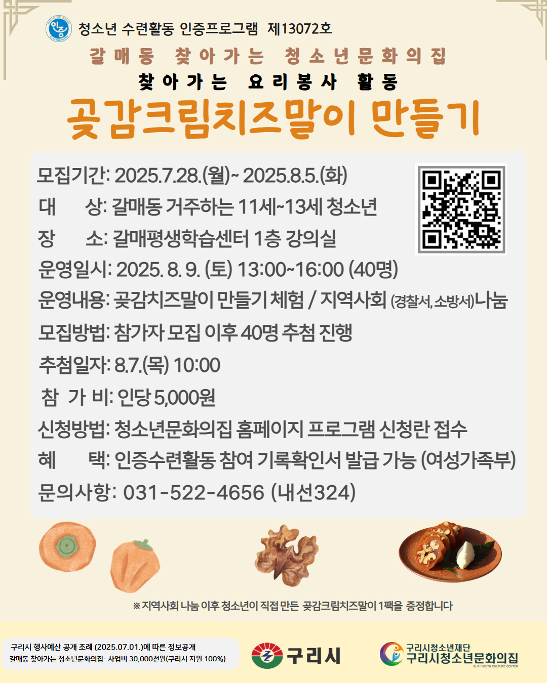 | 프로그램명 | 갈매동 찾아가는 요리봉사 곶감크림치즈말이 만들기 |