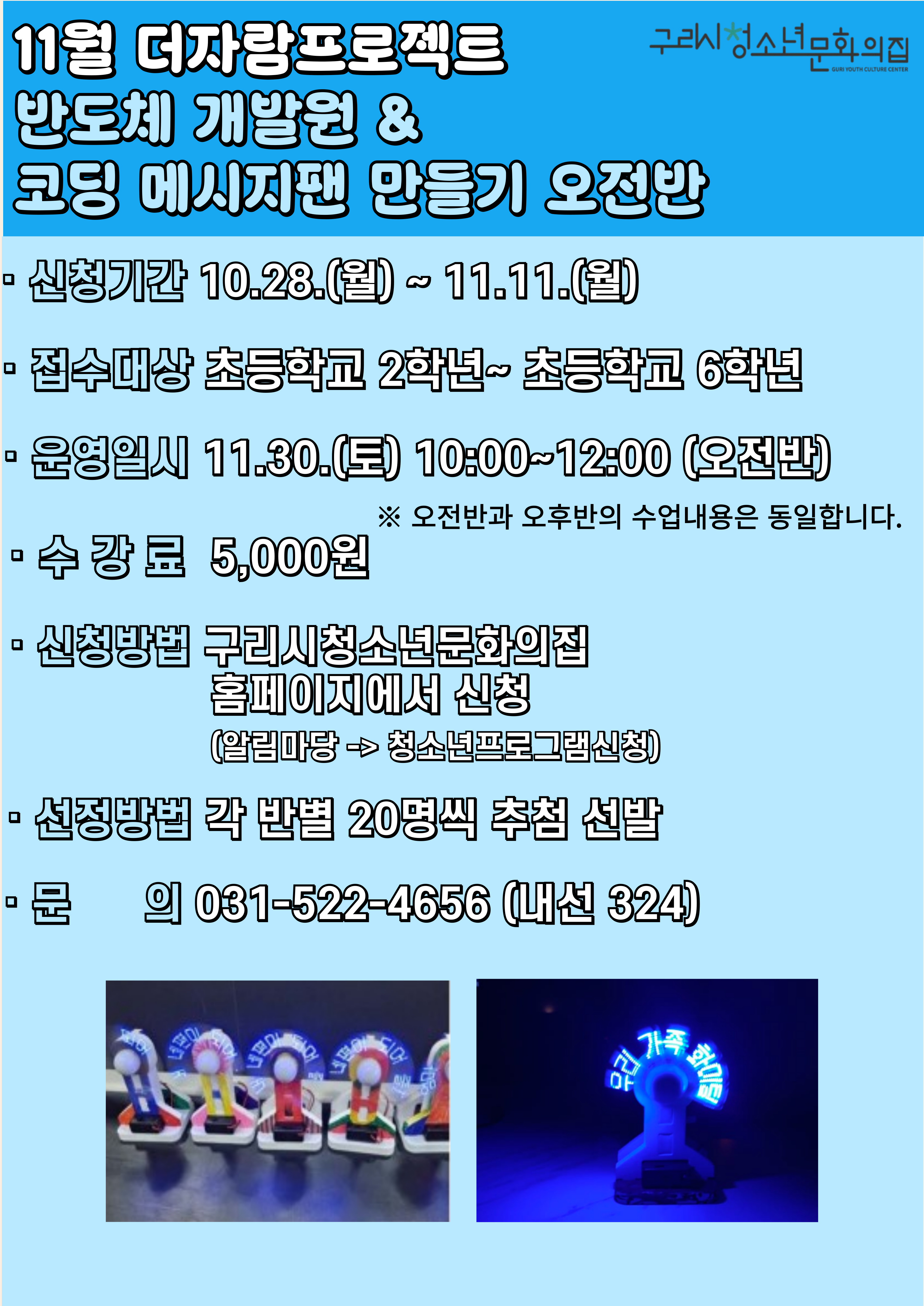 | 프로그램명 | 더자람프로젝트 차세대 반도체 개발원 직업탐구 오후반 (11.30.) |