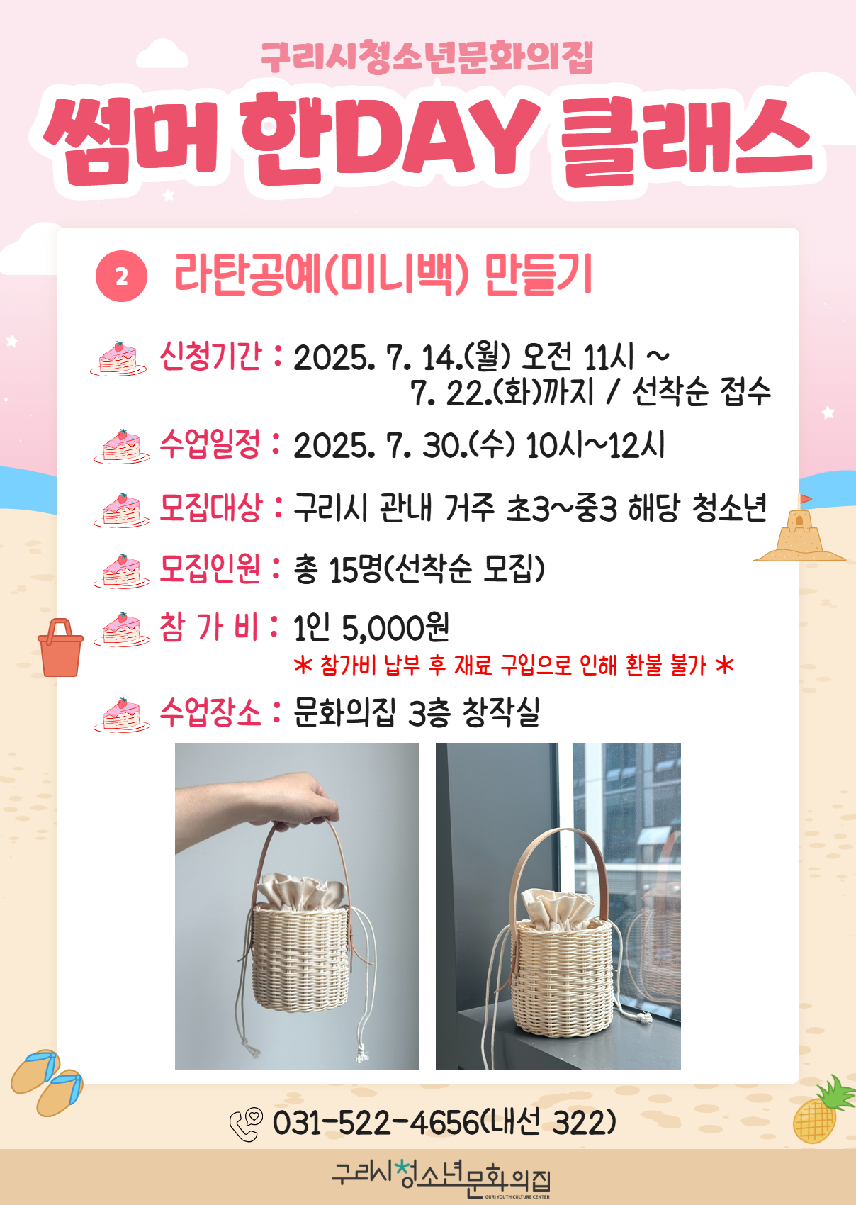 | 프로그램명 | '썸머 한DAY 클래스' - 라탄공예(미니백 만들기) |