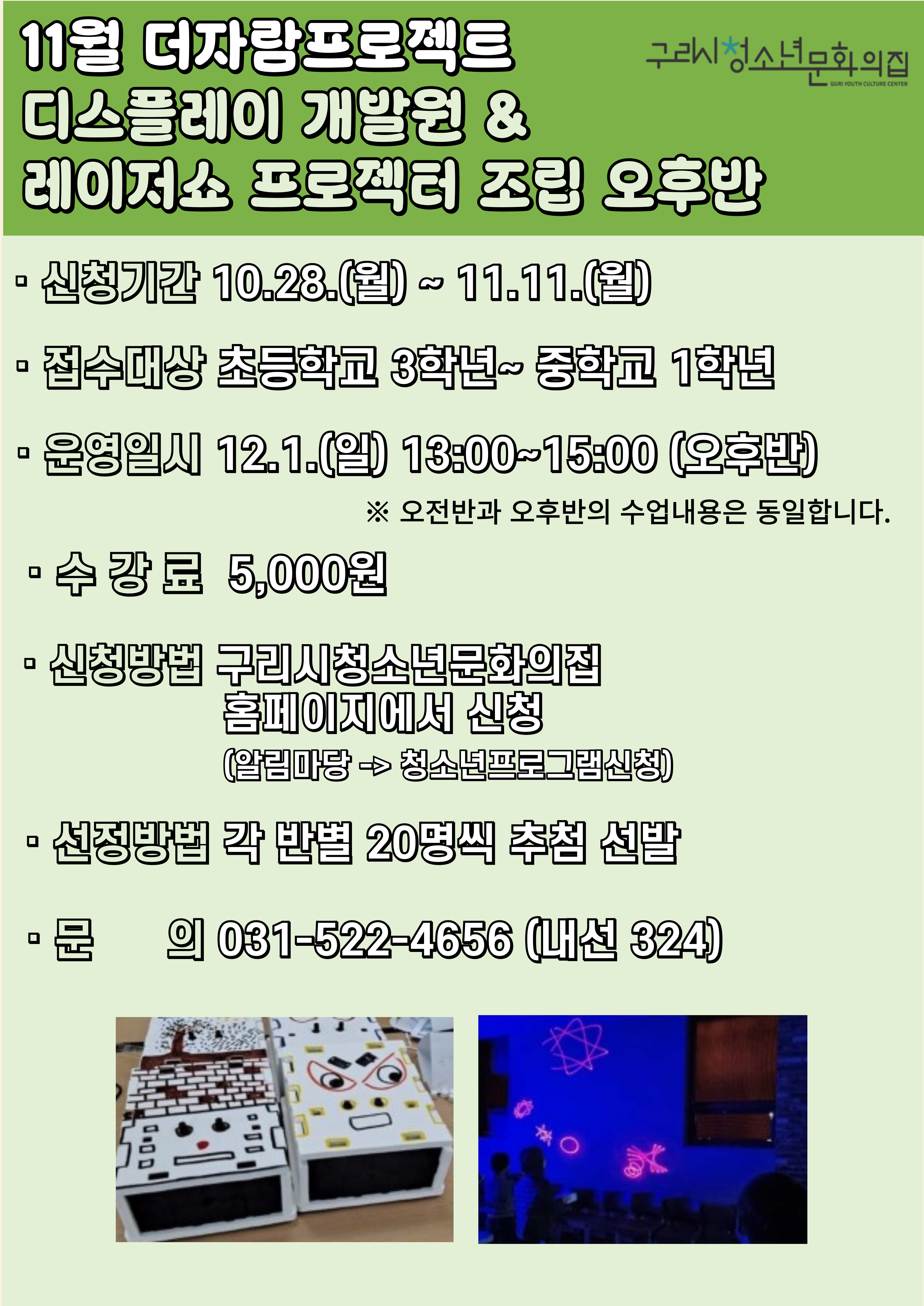 | 교육장소 | 구리시청소년문화의집 3층 창의실 |