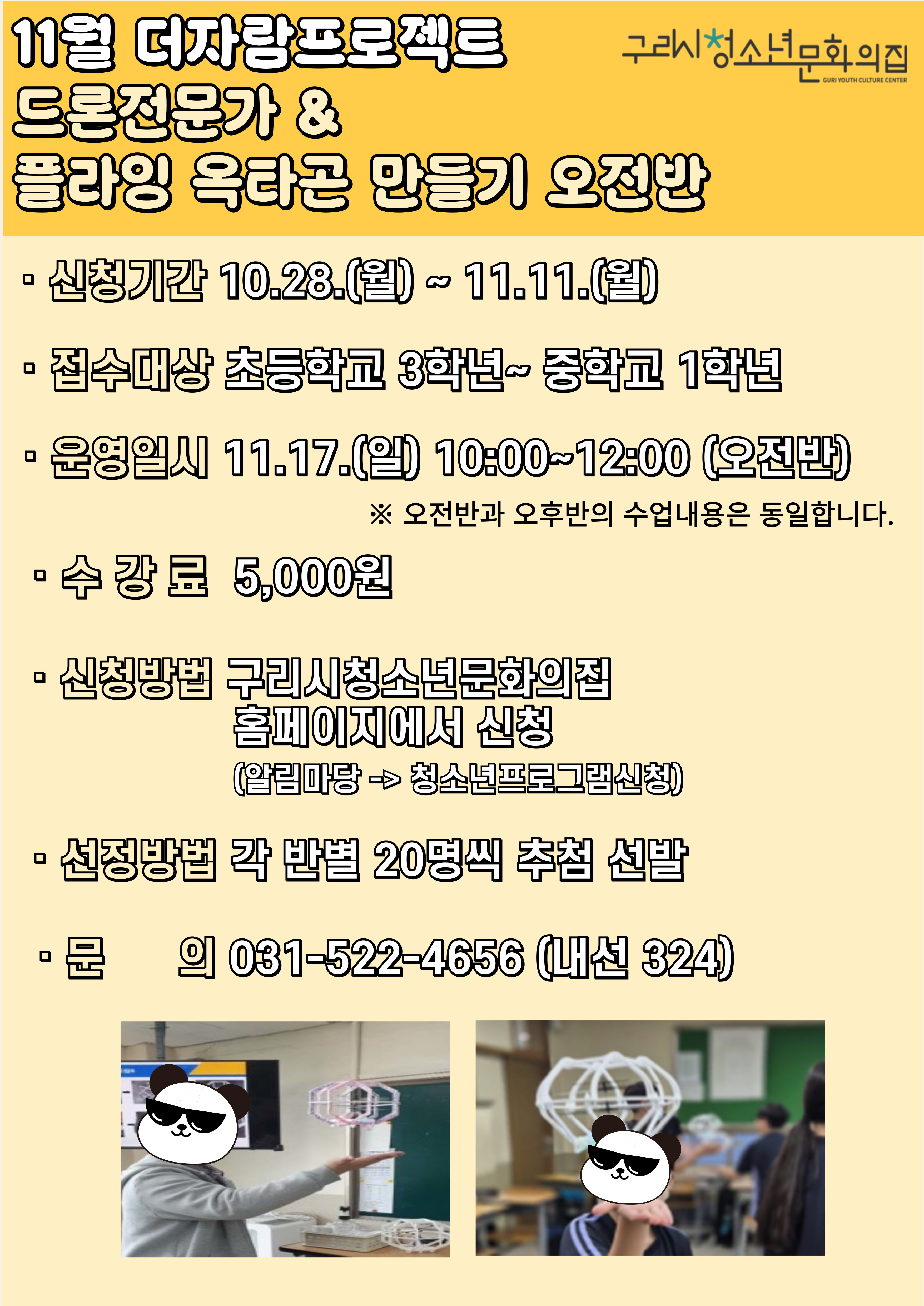 | 프로그램명 | 더자람프로젝트 드론전문가 직업탐구 오전반 (11.17.) |
