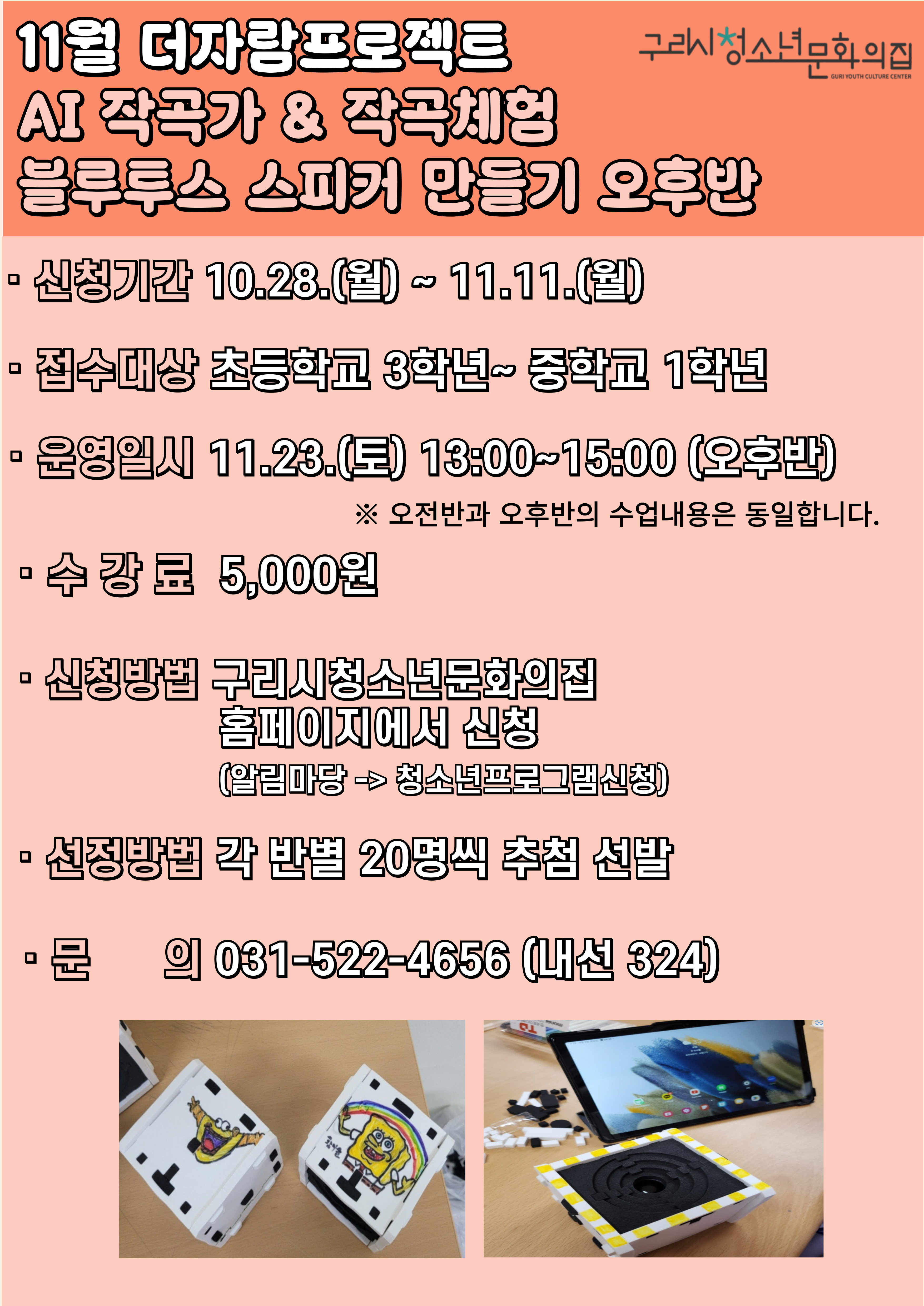 | 교육장소 | 구리시청소년문화의집 3층 창의실 |