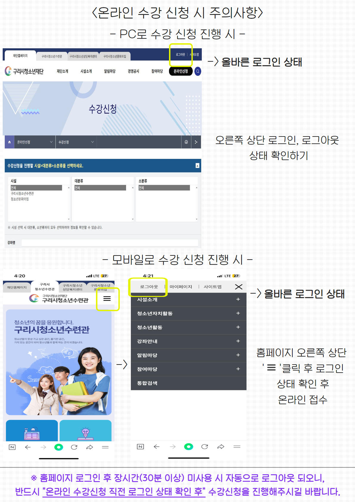 온라인 수강신청 시 로그인 안하면 문제가 되나요? 작성자 유병흔 작성일 2025년 4월 9일 11시 51분 42초 조회 144 주의사항1.jpg [ Size : 1007.48KB , Down : 128 ] 미리보기 다운로드 주의사항2.jpg [ Size : 2.86MB , Down : 155 ] 미리보기 다운로드 목록보기