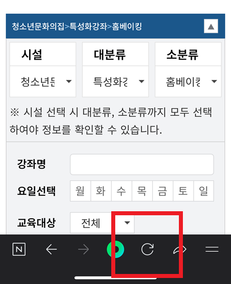 - 접수 시작 후 (오전10:00) 후 새로고침 버튼을 눌러주셔야 강좌리스트 확인 가능합니다.