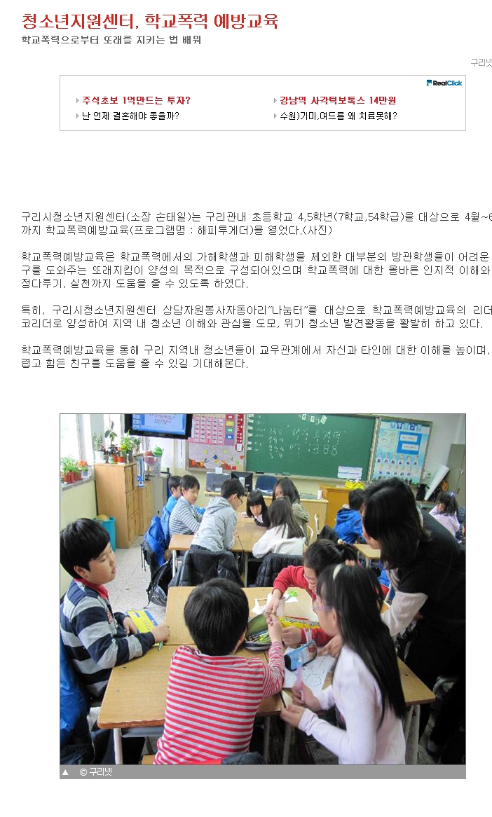 청소년상담복지센터 구리넷 기사 "학교폭력예방교육"