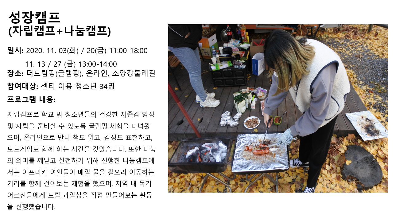 청소년상담복지센터 2020년 11월 성장캠프 작성자 관리자 등록일자 2020년 12월 4일 11시 11분 35초 조회 359 1607047895_photo_table.png [ Size : 1.05MB , Down : 136 ] 미리보기 다운로드 목록보기