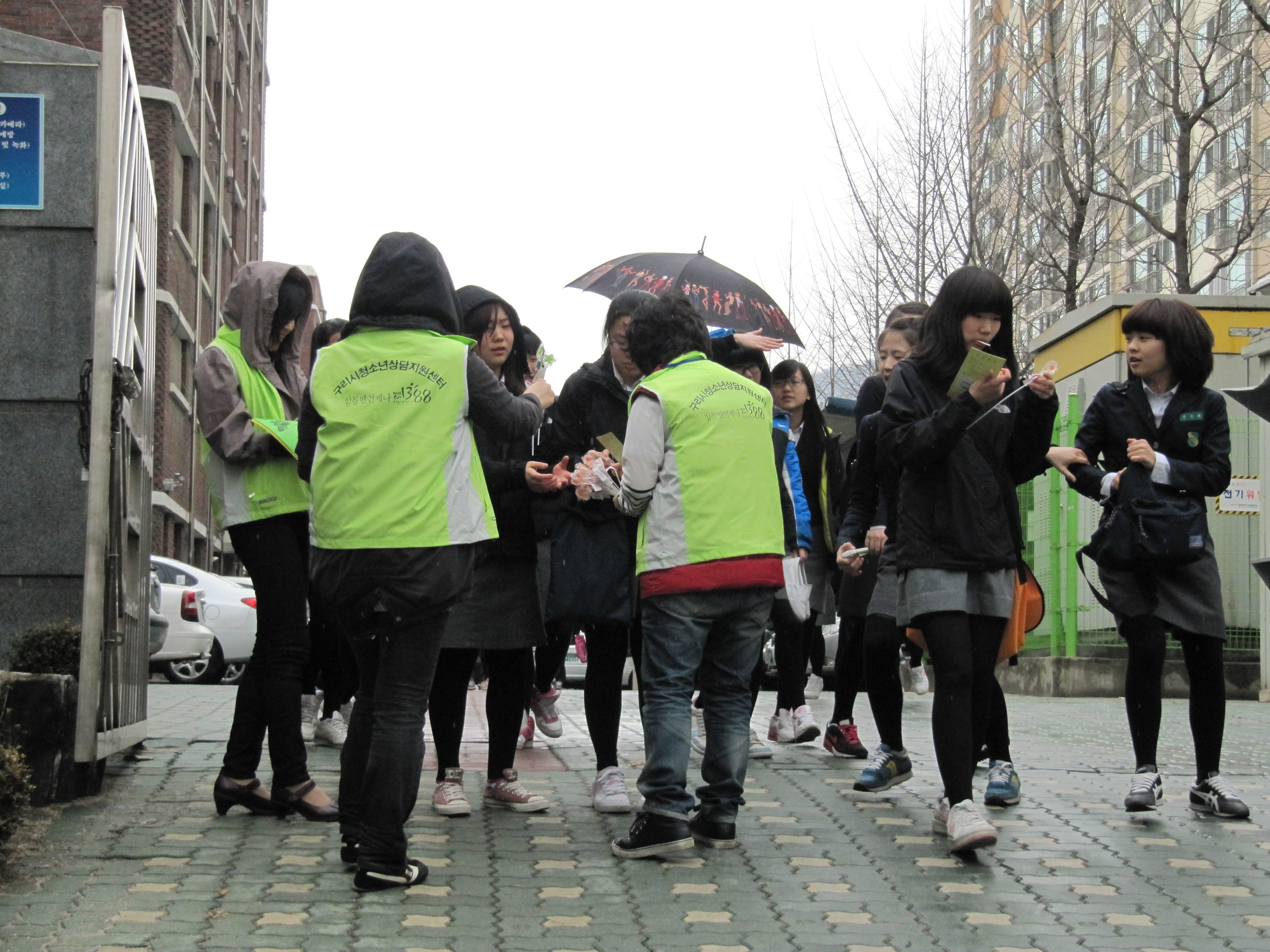 청소년상담복지센터 제1회 아웃리치 작성자 관리자 등록일자 2010년 4월 26일 14시 3분 3초 조회 1,623 3월 25일은 2010년 제1회 아웃리치를 하였습니다. 교문중학교와 장자중학교, 삼육중학교에서 실시된 아웃리치를 통해 청소년들에게 청소년지원센터와 1388 전화 홍보를 하였으며, 실제 상담을 받기 원하는 학생을 발굴하여 지원센터와의 지속적인 상담과 지원이 이루어지도록 연계하였습니다. 1272258183_photo_table.jpg [ Size : 2.72MB , Down : 150 ] 미리보기 다운로드 목록보기