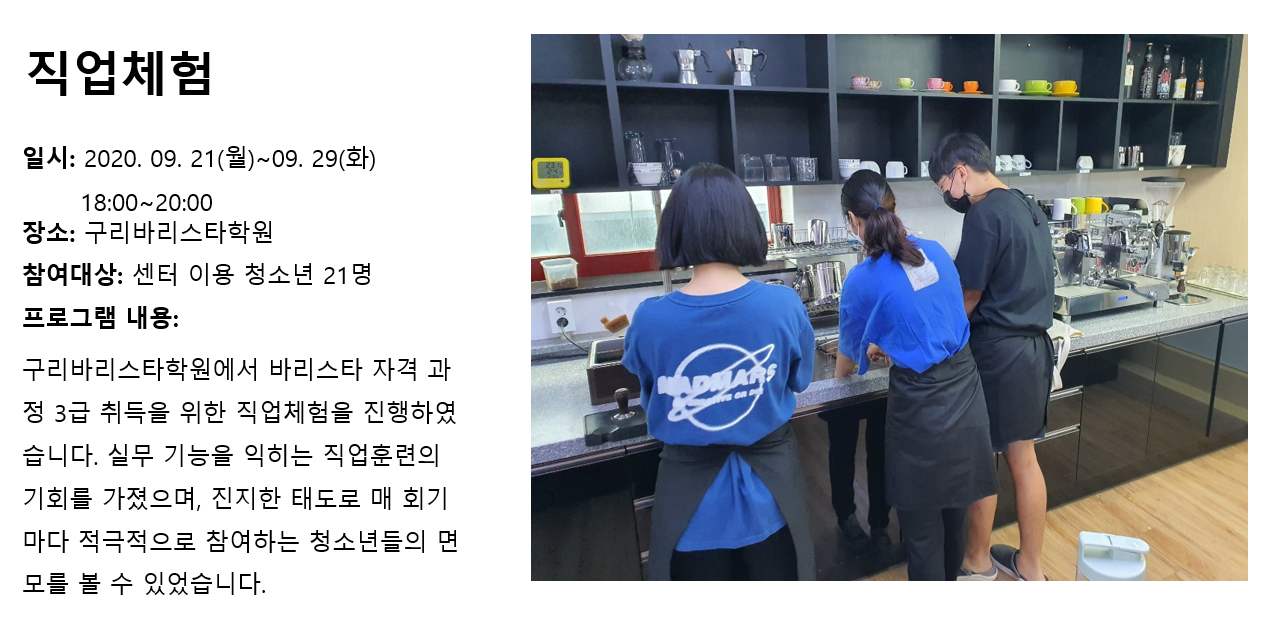 청소년상담복지센터 2020년 9월 직업체험 작성자 관리자 등록일자 2020년 10월 7일 14시 43분 36초 조회 288 1602049416_photo_table.png [ Size : 900.08KB , Down : 111 ] 미리보기 다운로드 목록보기