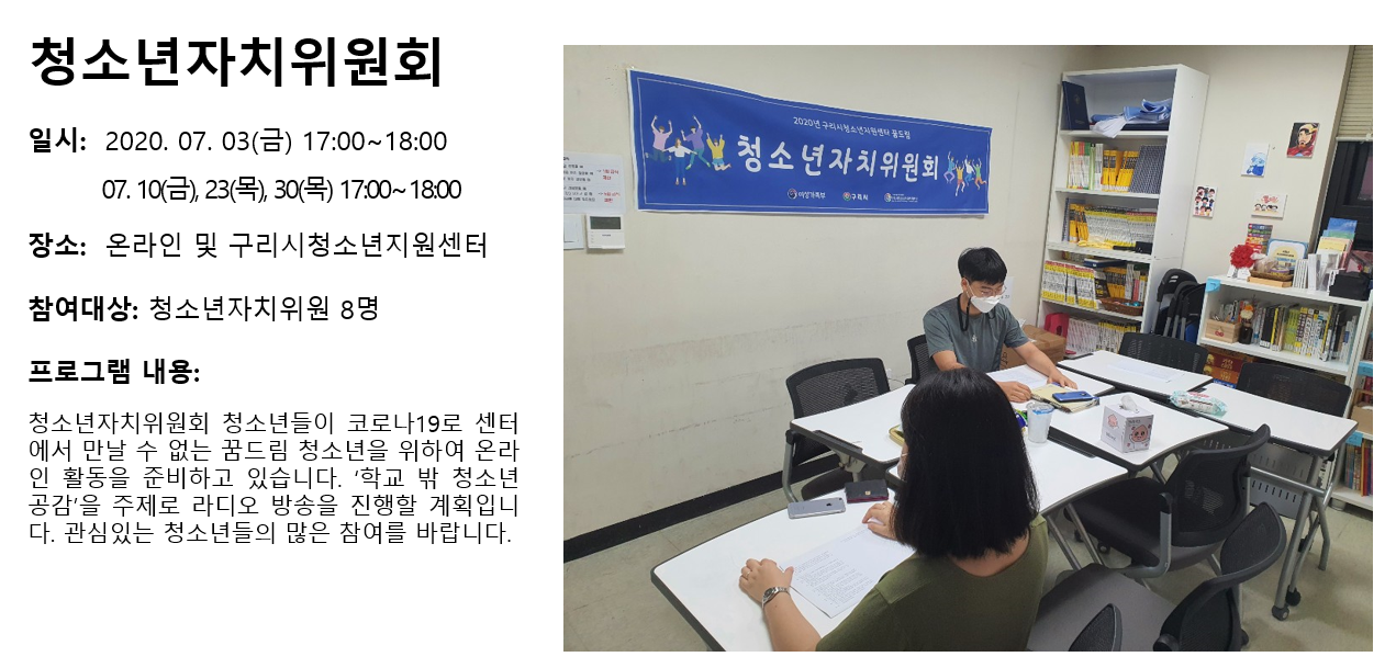 청소년상담복지센터 2020년 7월 처오년자치위원회 작성자 관리자 등록일자 2020년 8월 5일 13시 37분 10초 조회 309 1596602230_photo_table.png [ Size : 767.24KB , Down : 113 ] 미리보기 다운로드 목록보기