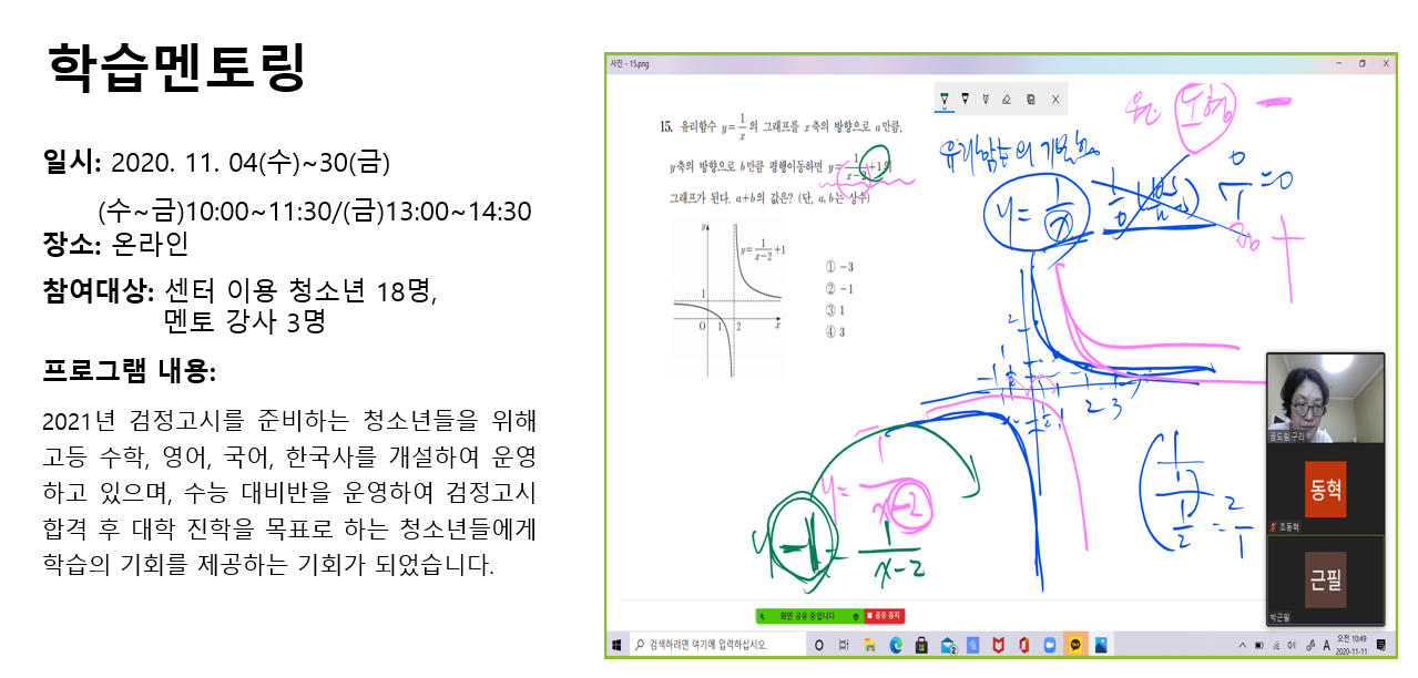 청소년상담복지센터 2020년 11월 학습멘토링 작성자 관리자 등록일자 2020년 12월 4일 11시 13분 58초 조회 367 1607048038_photo_table.png [ Size : 194.23KB , Down : 137 ] 미리보기 다운로드 목록보기