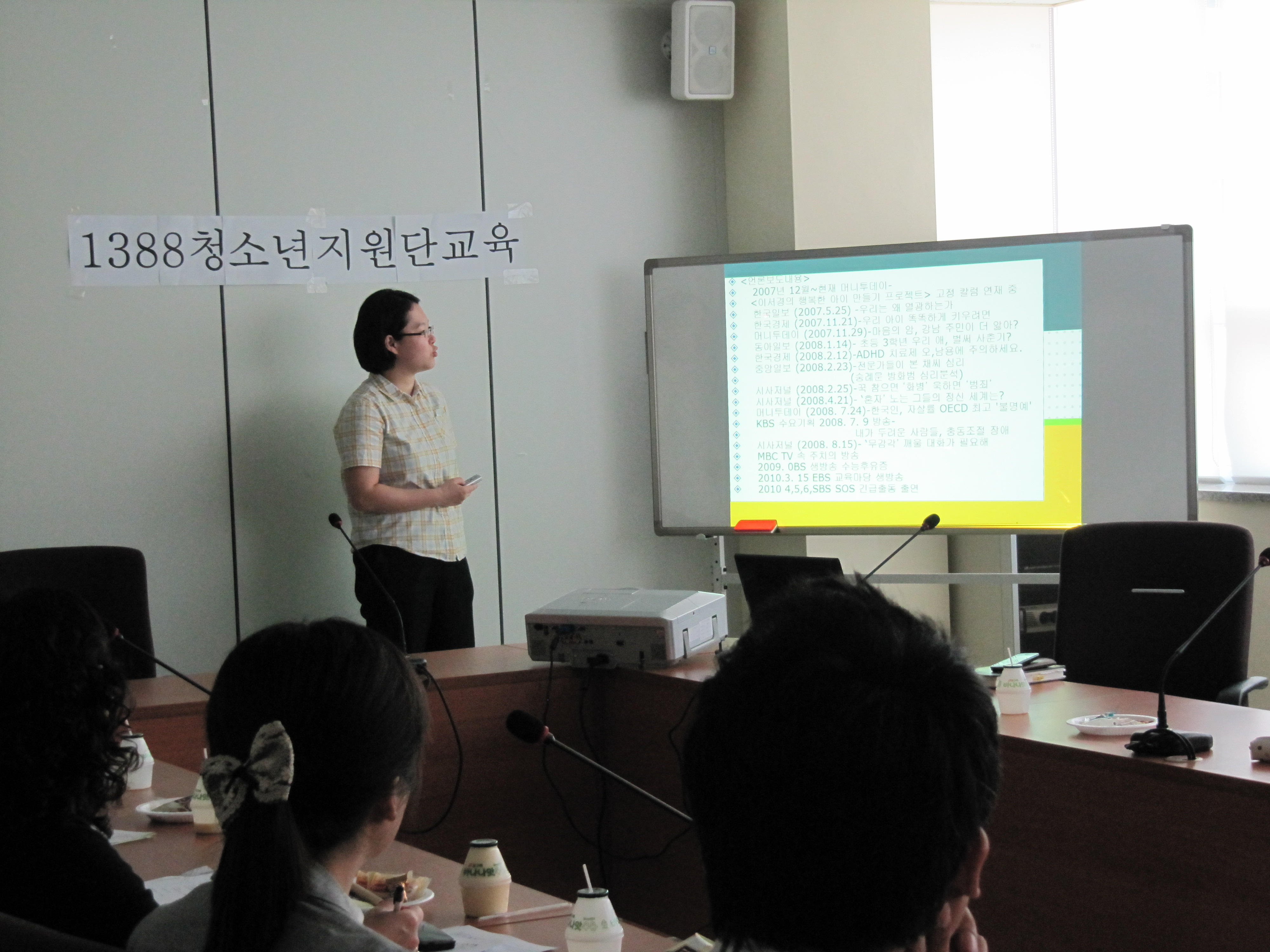 청소년상담복지센터 1388청소년지원단(발견지원단)교육 작성자 관리자 등록일자 2011년 5월 18일 15시 6분 53초 조회 866 1388청소년지원단(발견지원단) 교육 이서경(아동,청소년정신과 전문의, 한서중앙병원)원장님께서 "아동,청소년 정신건강의 이해"를 주제로 강의를 해주셨습니다. 1313992662_photo_table.jpg [ Size : 1.97MB , Down : 131 ] 미리보기 다운로드 목록보기