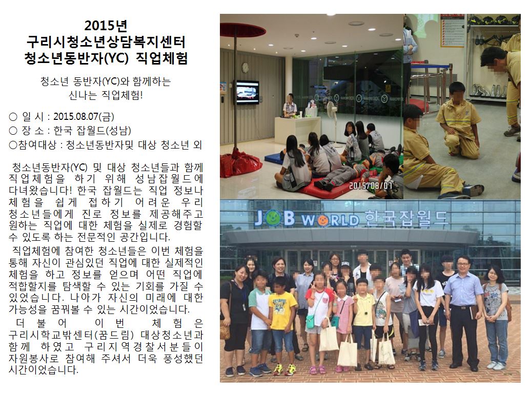 청소년상담복지센터 2015년 청소년동반자와 함께하는 직업체험 작성자 관리자 등록일자 2015년 9월 3일 11시 36분 23초 조회 515 1441247783_photo_table.jpg [ Size : 194.03KB , Down : 113 ] 미리보기 다운로드 목록보기