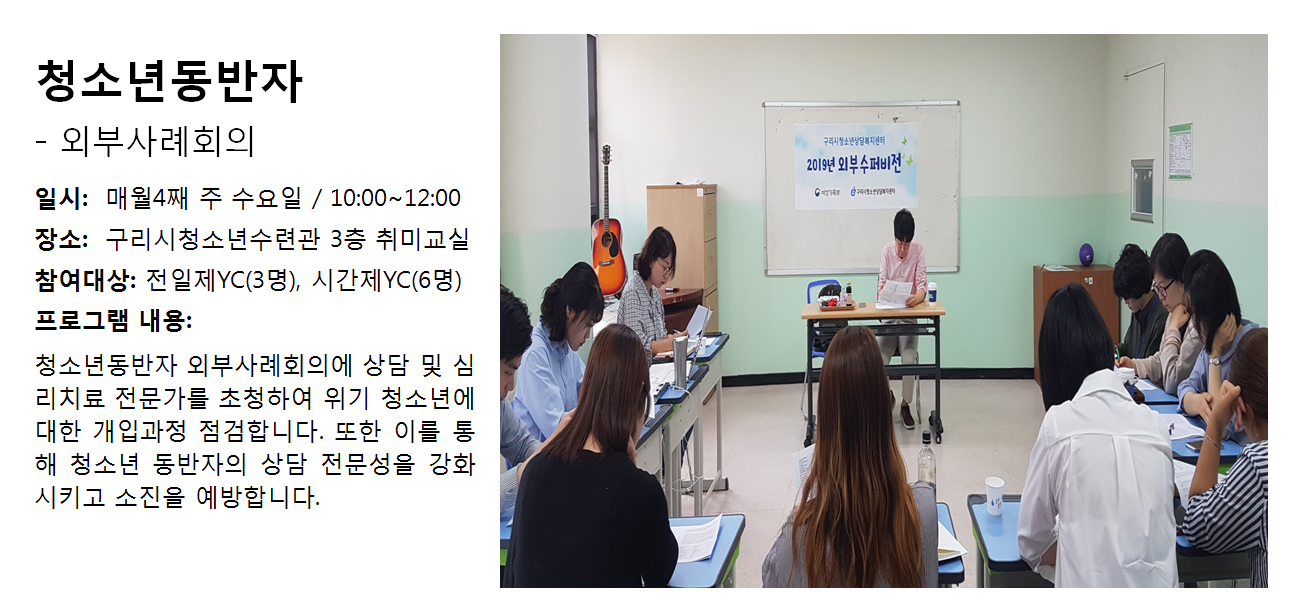 청소년상담복지센터 2019년 9월 청소년동반자 - 외부사례회의 작성자 관리자 등록일자 2019년 10월 2일 17시 20분 54초 조회 380 1570004454_photo_table.png [ Size : 828.09KB , Down : 106 ] 미리보기 다운로드 목록보기