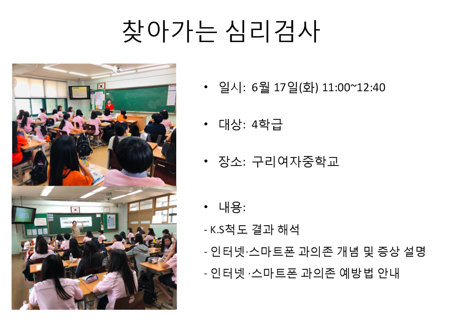 청소년상담복지센터 2019년 6월 찾아가는심리검사 작성자 관리자 등록일자 2019년 7월 3일 11시 21분 28초 조회 298 1562120488_photo_table.png [ Size : 435.82KB , Down : 113 ] 미리보기 다운로드 목록보기