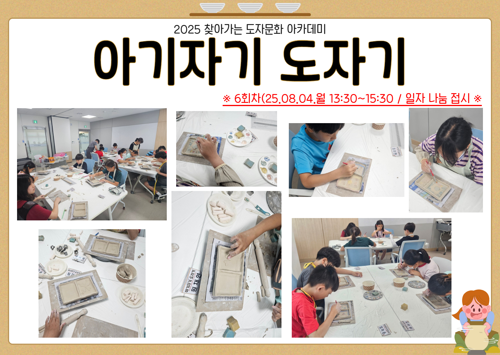 청소년문화의집 2025년 아기자기 도자기 6회차-일자 나눔 접시(25.08.04) 작성자 김윤지 등록일자 2025년 8월 5일 16시 58분 56초 조회 76 아기자기 도자기 활동기록 15.jpg [ Size : 1.56MB , Down : 29 ] 미리보기 다운로드 아기자기 도자기 활동기록 16.jpg [ Size : 1.46MB , Down : 33 ] 미리보기 다운로드 목록보기