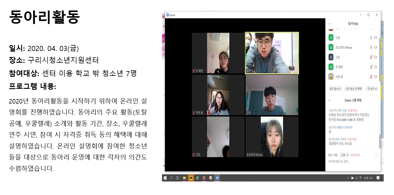 청소년상담복지센터 2020년 4월 동아리 활동 작성자 관리자 등록일자 2020년 5월 7일 10시 49분 53초 조회 333 1588816193_photo_table.png [ Size : 371.67KB , Down : 113 ] 미리보기 다운로드 목록보기