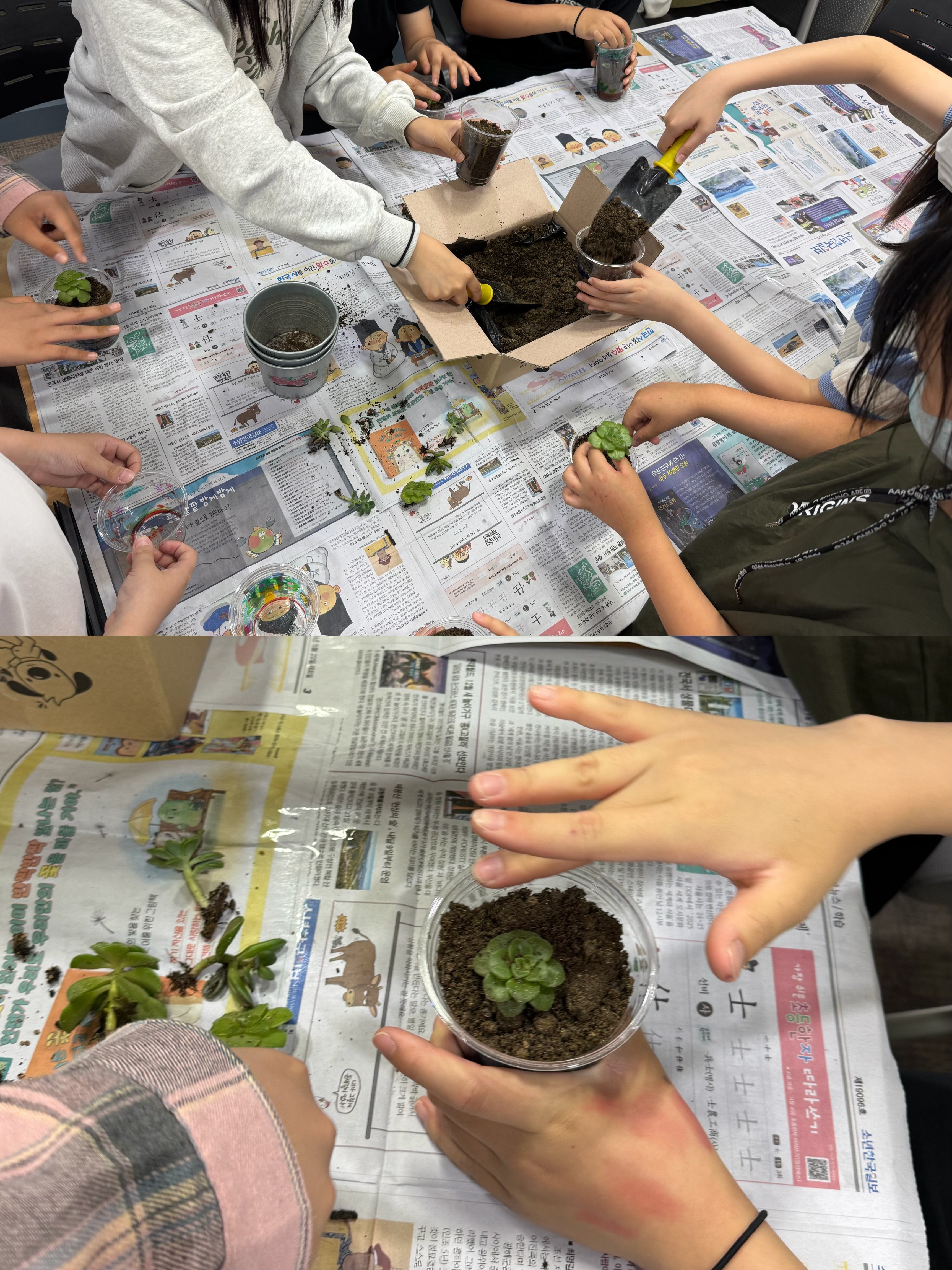 청소년수련관 늘푸름방과후아카데미 환경동아리 청정 재활용 화분으로 다육이 심기 활동
