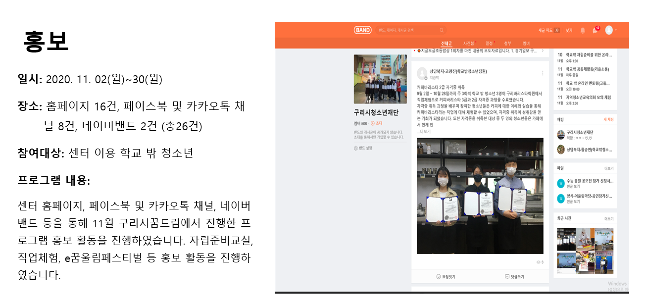 청소년상담복지센터 2020년 11월 홍보 작성자 관리자 등록일자 2020년 12월 4일 11시 15분 12초 조회 378 1607048112_photo_table.png [ Size : 300.09KB , Down : 143 ] 미리보기 다운로드 목록보기