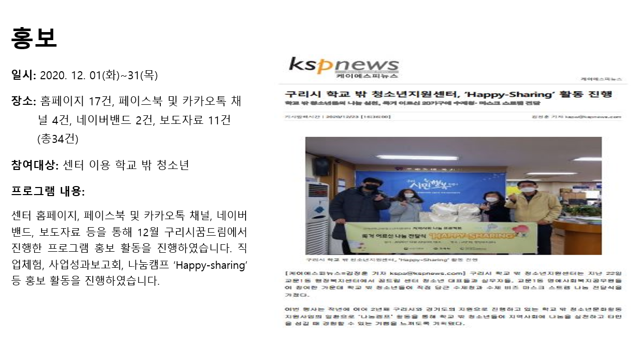 청소년상담복지센터 2020년 12월 홍보 작성자 관리자 등록일자 2021년 1월 7일 9시 27분 47초 조회 325 1609979267_photo_table.png [ Size : 544.79KB , Down : 137 ] 미리보기 다운로드 목록보기