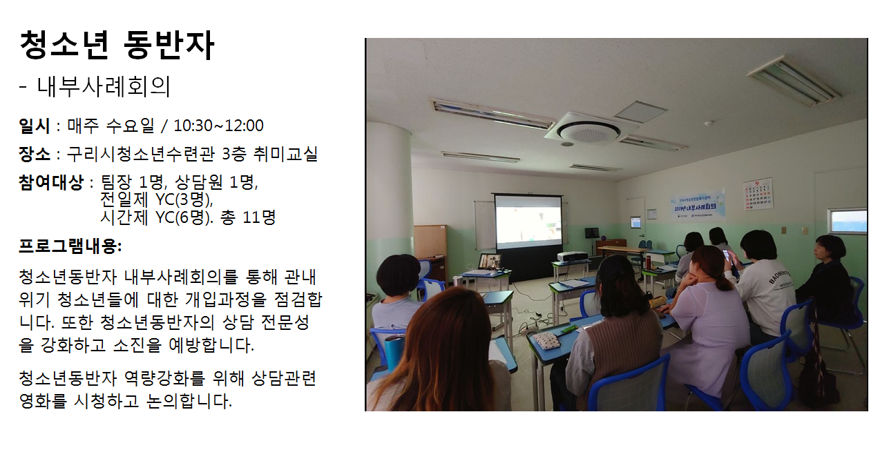 청소년상담복지센터 2019년 9월 YC 내부사례회의 작성자 관리자 등록일자 2019년 10월 2일 9시 31분 17초 조회 289 1569976277_photo_table.png [ Size : 674.26KB , Down : 117 ] 미리보기 다운로드 목록보기