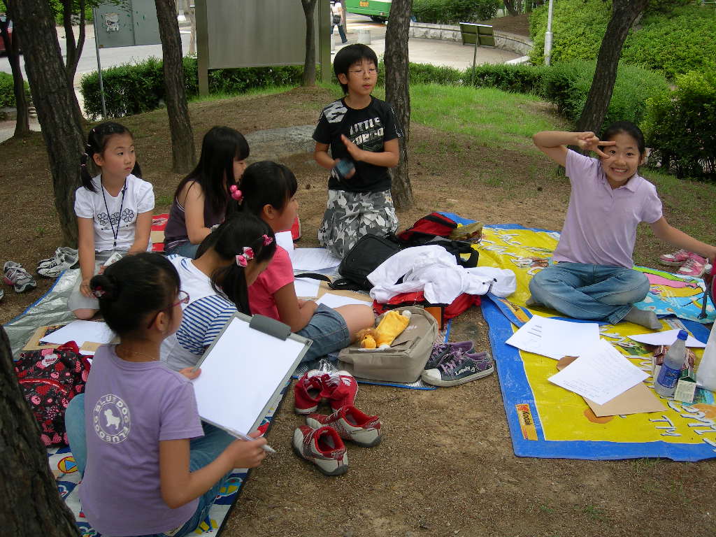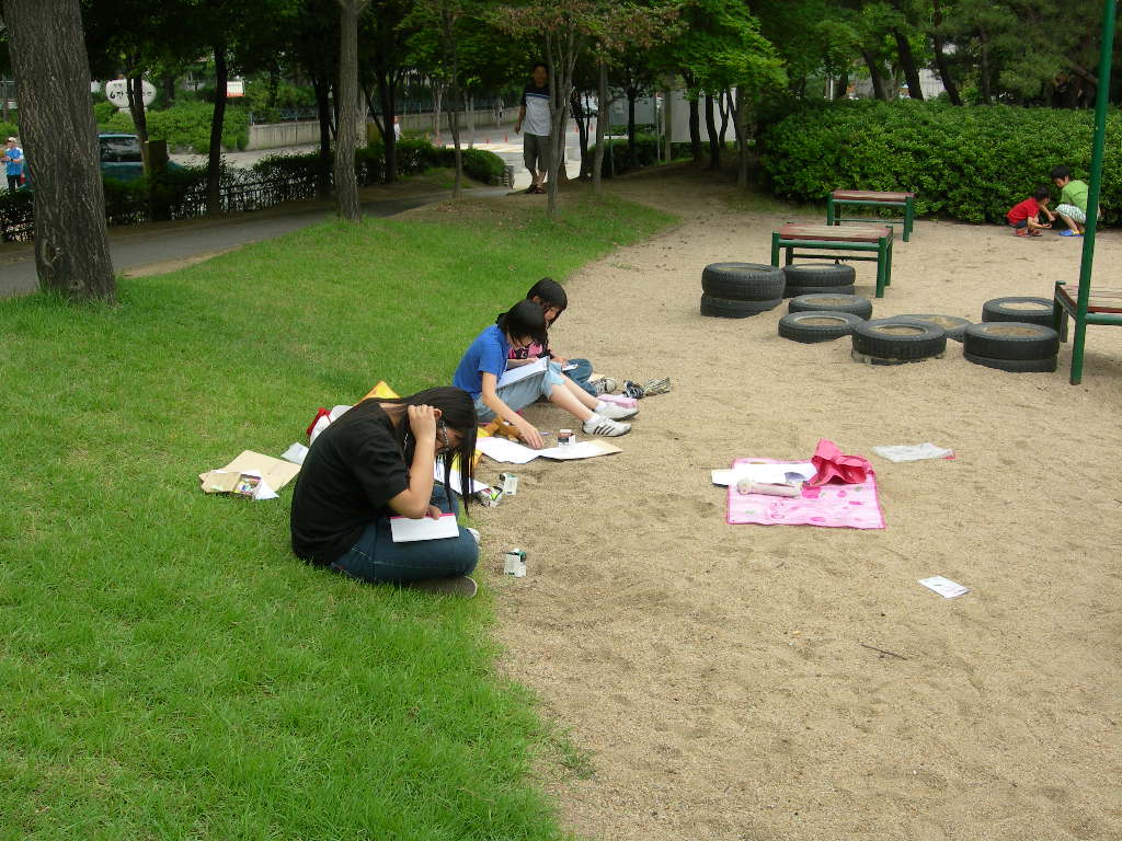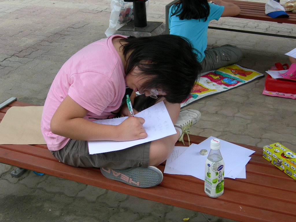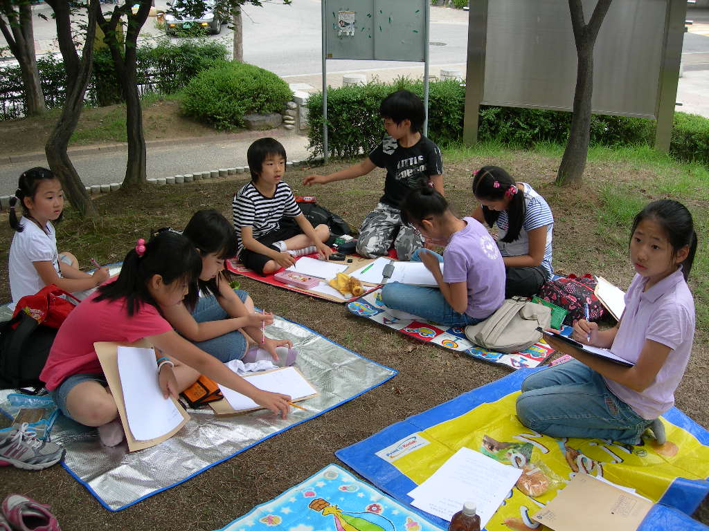 인창동 근린공원에서 백일장형식으로 열린 시, 산문 분야에 참가한 청소년들입니다.