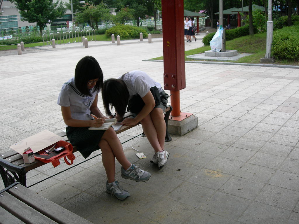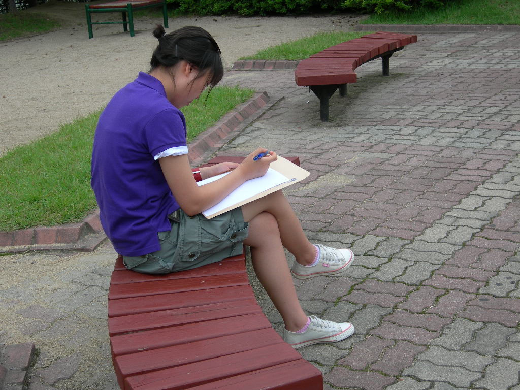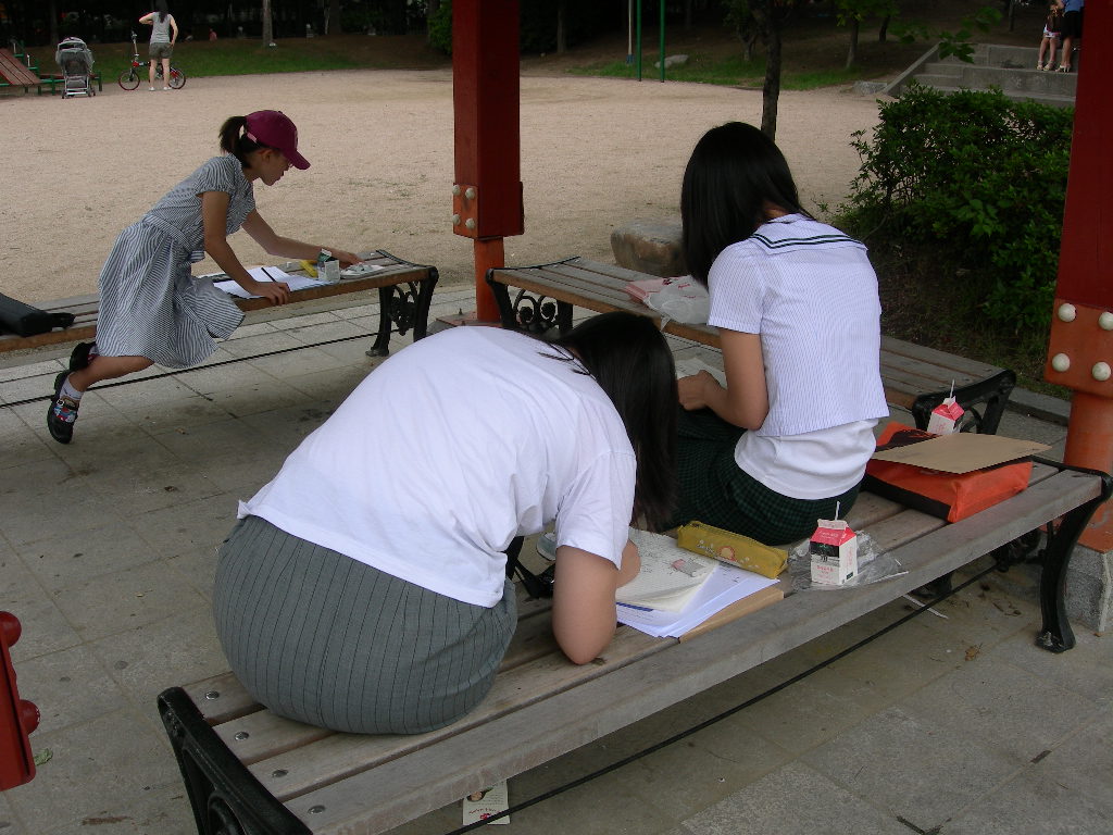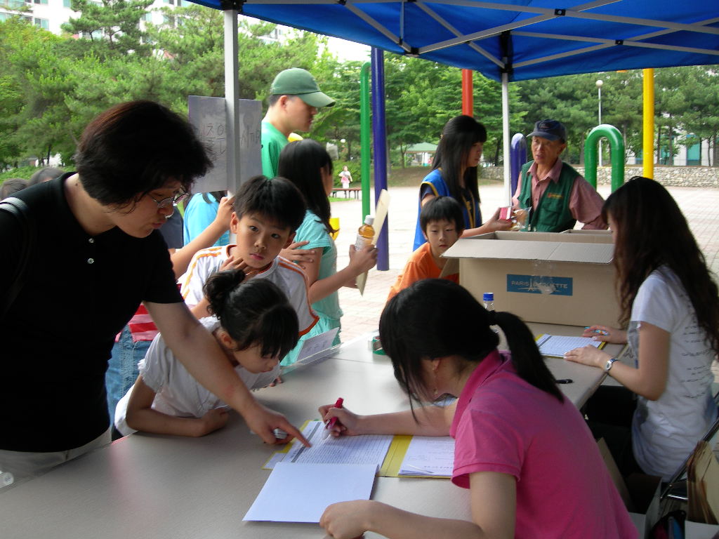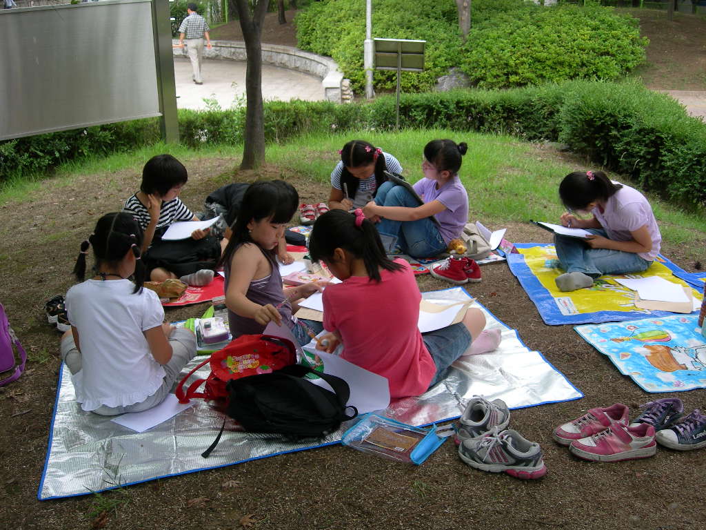 인창동 근린공원에서 백일장형식으로 열린 시, 산문 분야에 참가한 청소년들입니다.