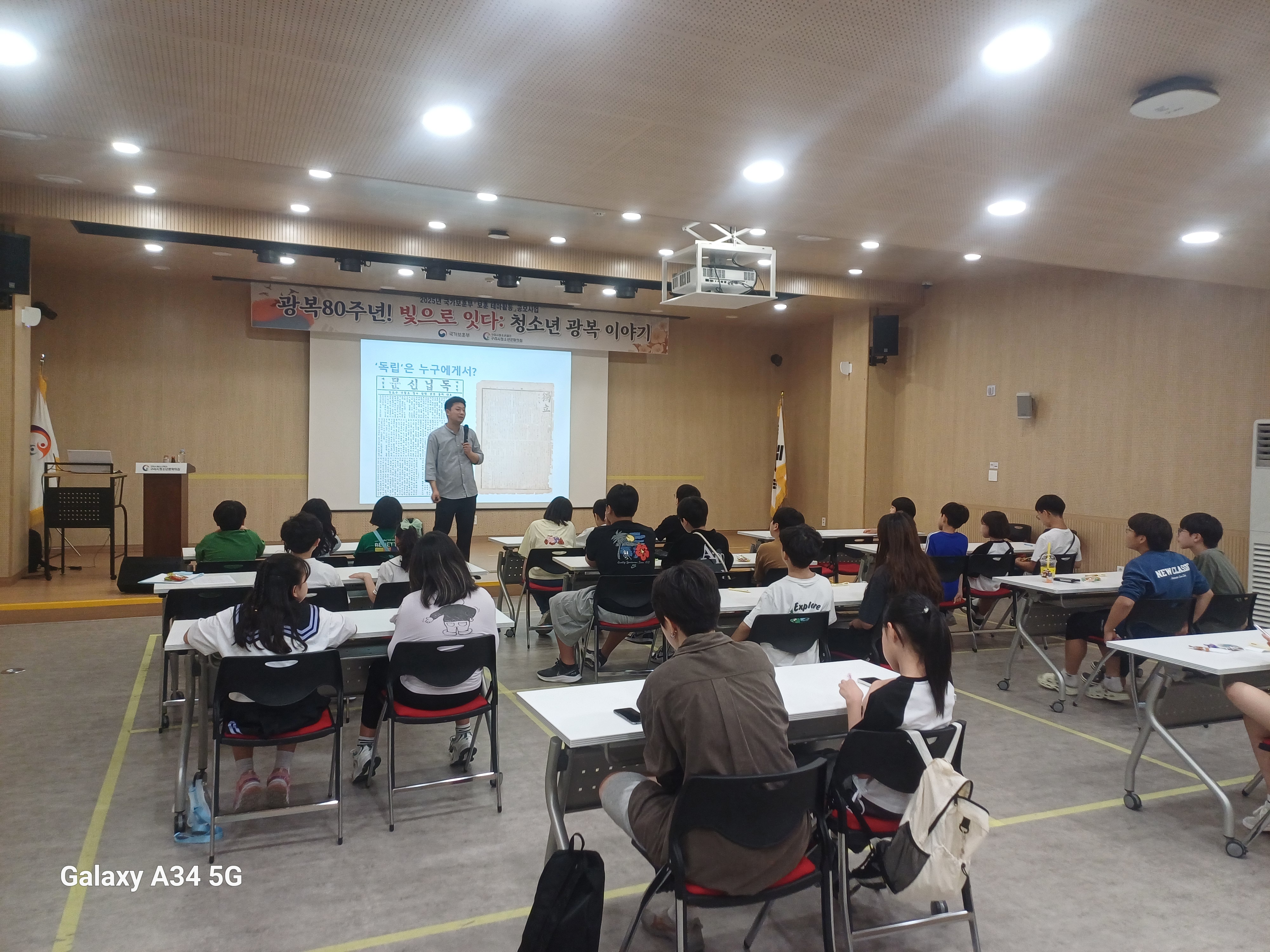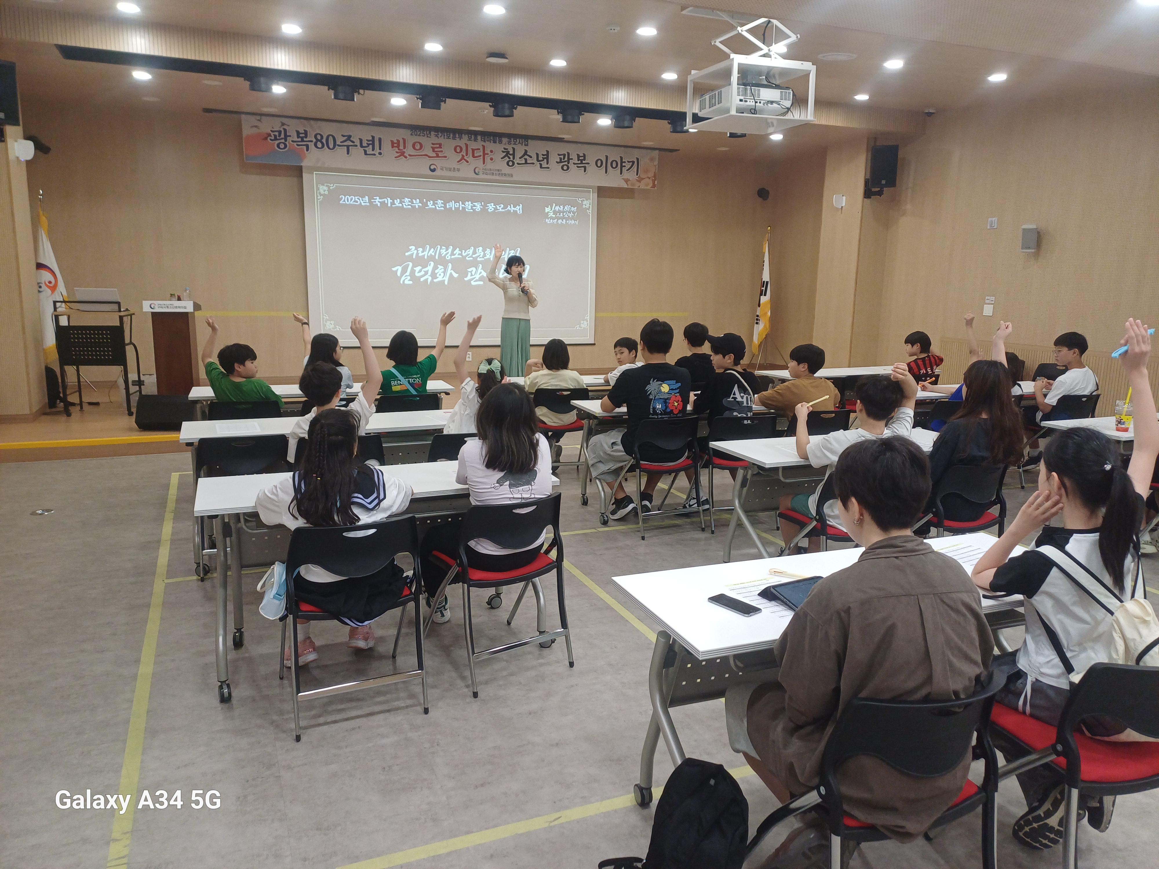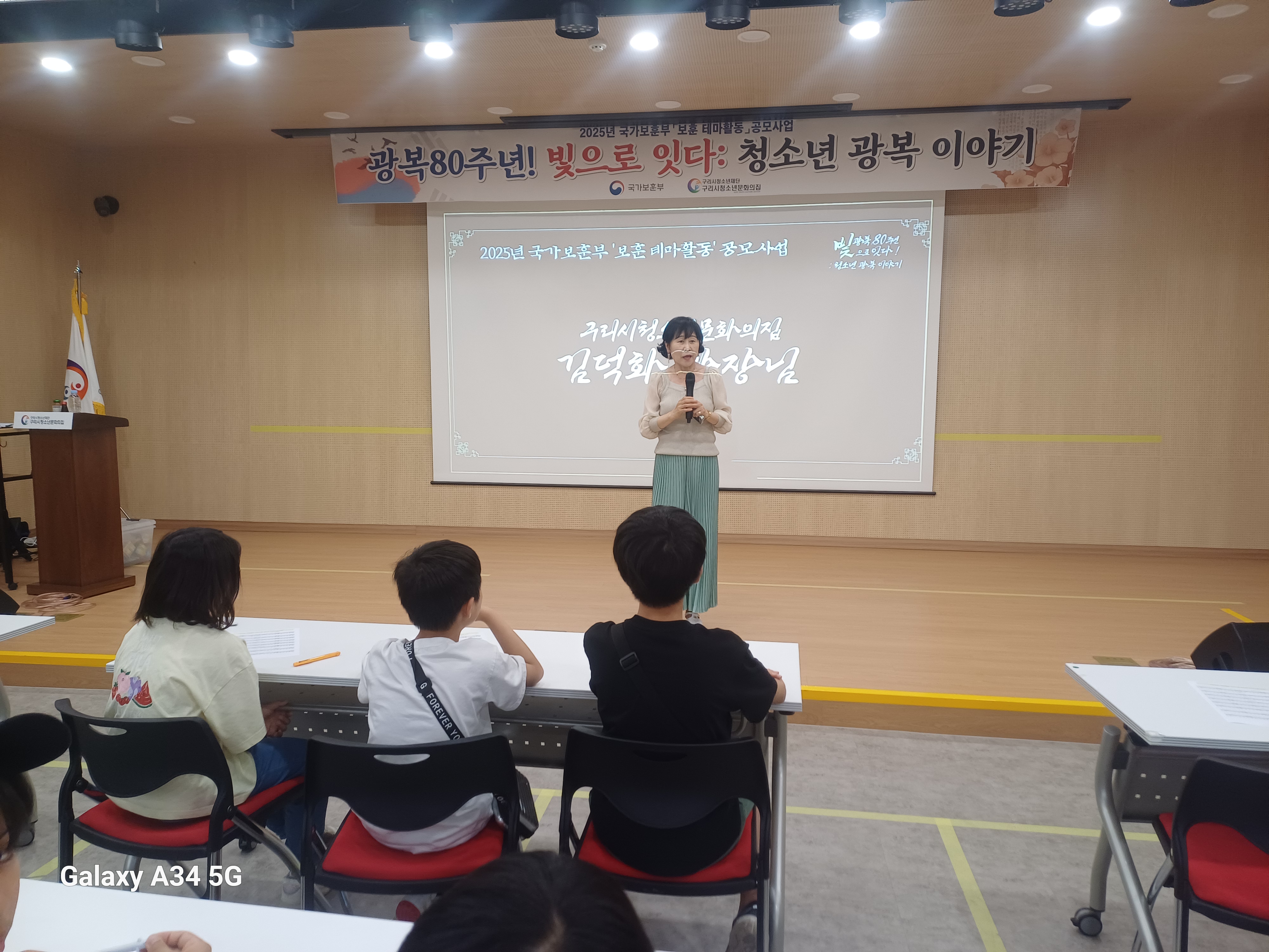 청소년문화의집 국가보훈부 공모사업 '청소년 광복 이야기' 1회차(2025.5.31.) 작성자 김진수 등록일자 2025년 6월 4일 9시 49분 35초 조회 144 안녕하세요!! 구리시청소년문화의집입니다!!광복 80주년! 빛으로 잇다: 청소년 광복 이야기 프로그램이 5월 31일(토) 문화의집 5층 드림홀에서 진행되었습니다!!! 우리나라를 위해 희생하신 독립운동가분들의 역사적 사실을 배우는 중요한 시간이었습니다:) 1.jpg [ Size : 2.71MB , Down : 67 ] 미리보기 다운로드 2.jpg [ Size : 3.15MB , Down : 76 ] 미리보기 다운로드 3.jpg [ Size : 3.17MB , Down : 72 ] 미리보기 다운로드 4.jpg [ Size : 3.06MB , Down : 68 ] 미리보기 다운로드 5.jpg [ Size : 4.15MB , Down : 76 ] 미리보기 다운로드 6.jpg [ Size : 2.57MB , Down : 64 ] 미리보기 다운로드 목록보기