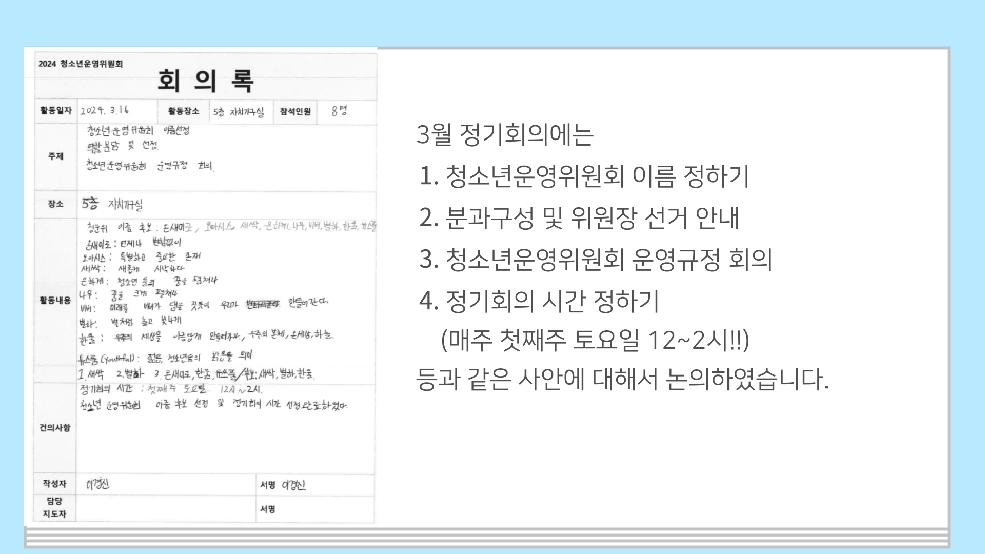 청소년문화의집 청소년운영위원회 기관장 간담회 발표 자료 공유