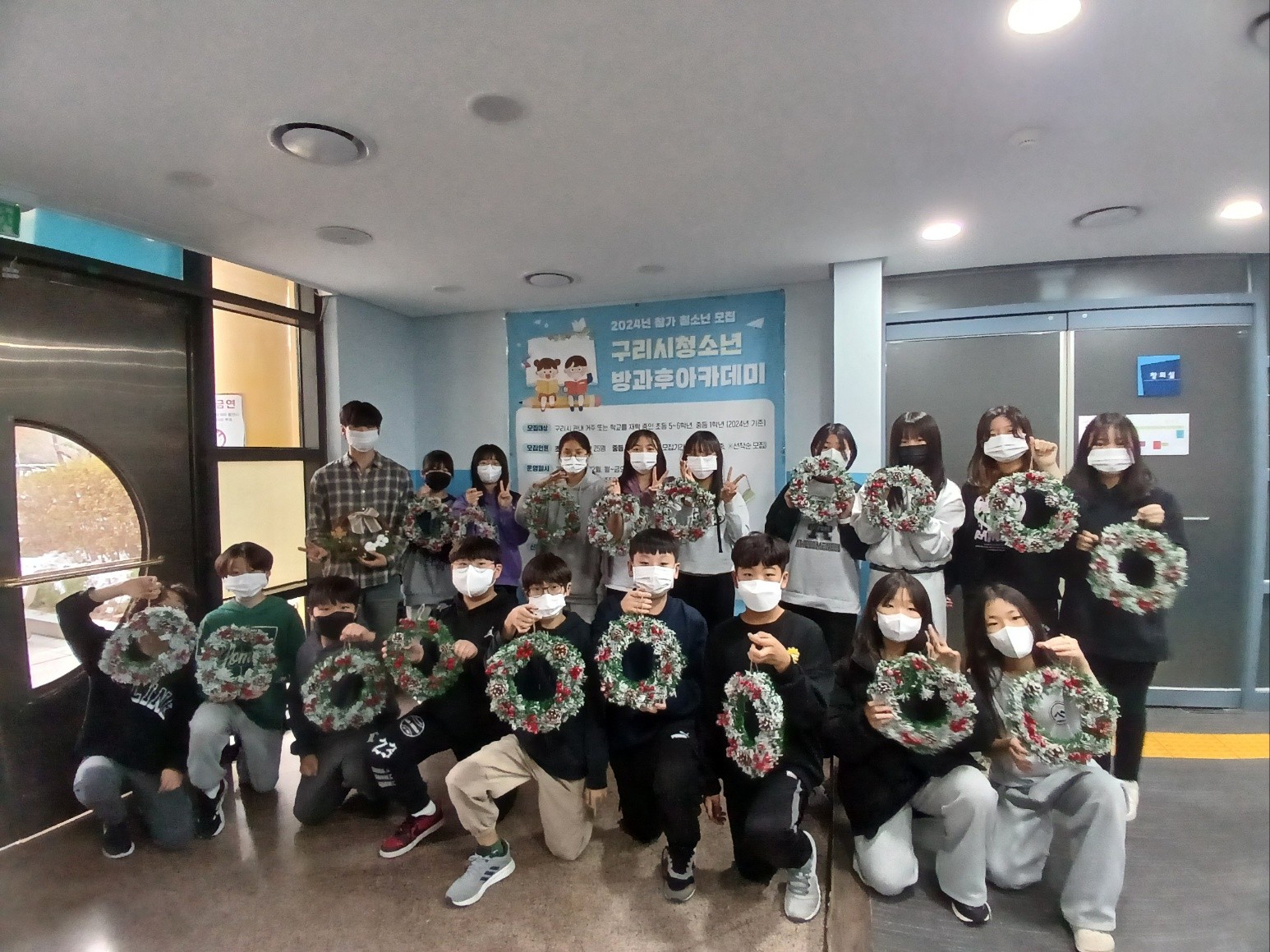 청소년수련관 늘푸름방과후아카데미 12월 크리스마스 리스 선물 작성자 권도연 등록일자 2024년 12월 2일 11시 44분 10초 조회 208 12월 크리스마스를 맞이하여 리스 선물을 주었답니다. 우리 친구들이 리스를 다듬어 자신만의 리스로 만들었습니다. 1.jpg [ Size : 457.51KB , Down : 102 ] 미리보기 다운로드 목록보기