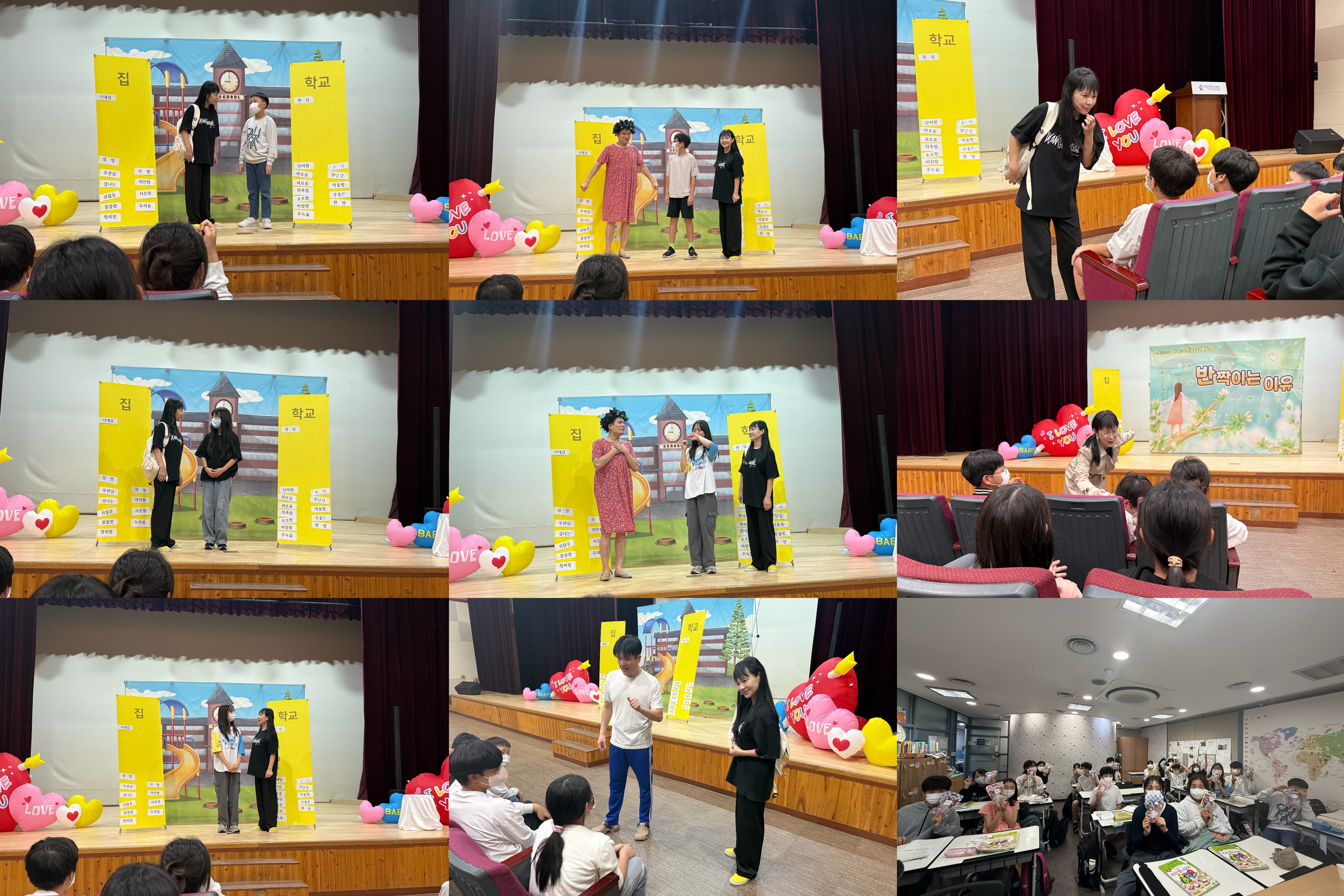 안녕하세요 늘푸름방과후아카데미입니다. 거점 다함께돌봄과 연계하여 솔솔컴퍼니의 뮤지컬 공연을 보았습니다. 사춘기 소녀의 이야기를 다룬 뮤지컬이였습니다. 방카 청소년들의 마음을 읽어주며 함께 진행된 공연이였습니다. 청소년들이 집중해서 관람하는 모습을 보여주었습니다!~^^