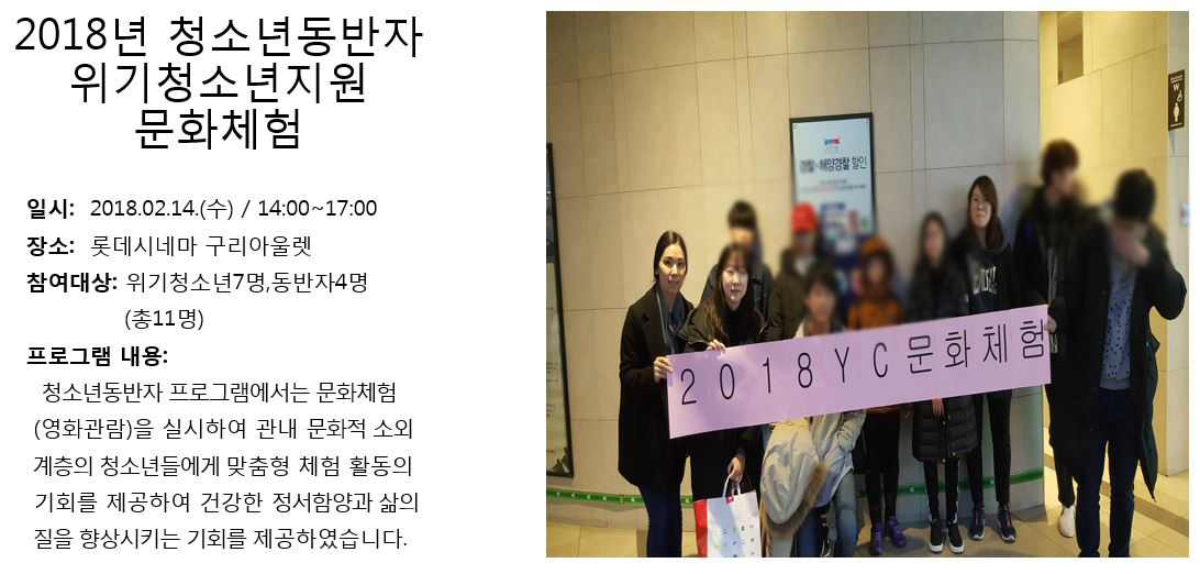 청소년상담복지센터 2018년 YC 위기청소년지원 문화체험 작성자 관리자 등록일자 2018년 3월 5일 17시 1분 17초 조회 389 1520236877_photo_table.jpg [ Size : 266.42KB , Down : 111 ] 미리보기 다운로드 목록보기