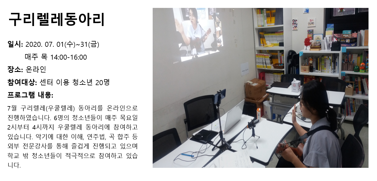 청소년상담복지센터 2020년 7월 구리렐레동아리 작성자 관리자 등록일자 2020년 8월 5일 13시 37분 39초 조회 334 1596602259_photo_table.png [ Size : 794.23KB , Down : 122 ] 미리보기 다운로드 목록보기
