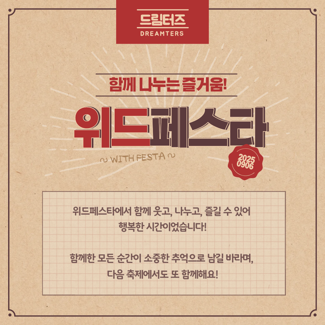 청소년문화의집 [대학생서포터즈] 9월 위드페스타 운영 현장스케치 카드뉴스 작성자 이호암 등록일자 2025년 10월 2일 15시 9분 6초 조회 75 1.png [ Size : 1.32MB , Down : 53 ] 미리보기 다운로드 2.png [ Size : 1.58MB , Down : 49 ] 미리보기 다운로드 3.png [ Size : 1.73MB , Down : 49 ] 미리보기 다운로드 4.png [ Size : 1.6MB , Down : 50 ] 미리보기 다운로드 5.png [ Size : 1.78MB , Down : 48 ] 미리보기 다운로드 6.png [ Size : 1.35MB , Down : 50 ] 미리보기 다운로드 목록보기