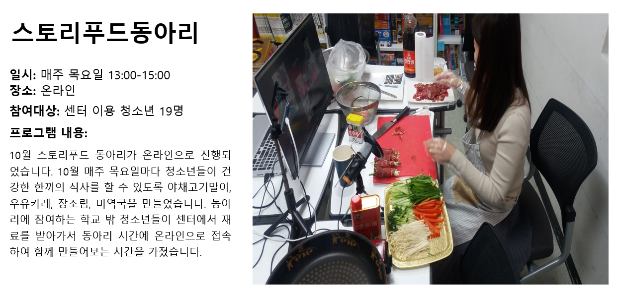 청소년상담복지센터 2020년 10월 스토리푸드동아리 작성자 관리자 등록일자 2020년 11월 10일 11시 49분 58초 조회 302 1604976598_photo_table.png [ Size : 890.46KB , Down : 137 ] 미리보기 다운로드 목록보기